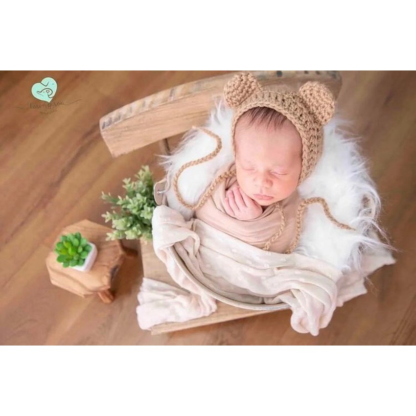 Touca urso marrom claro recém nascido fotografia newborn