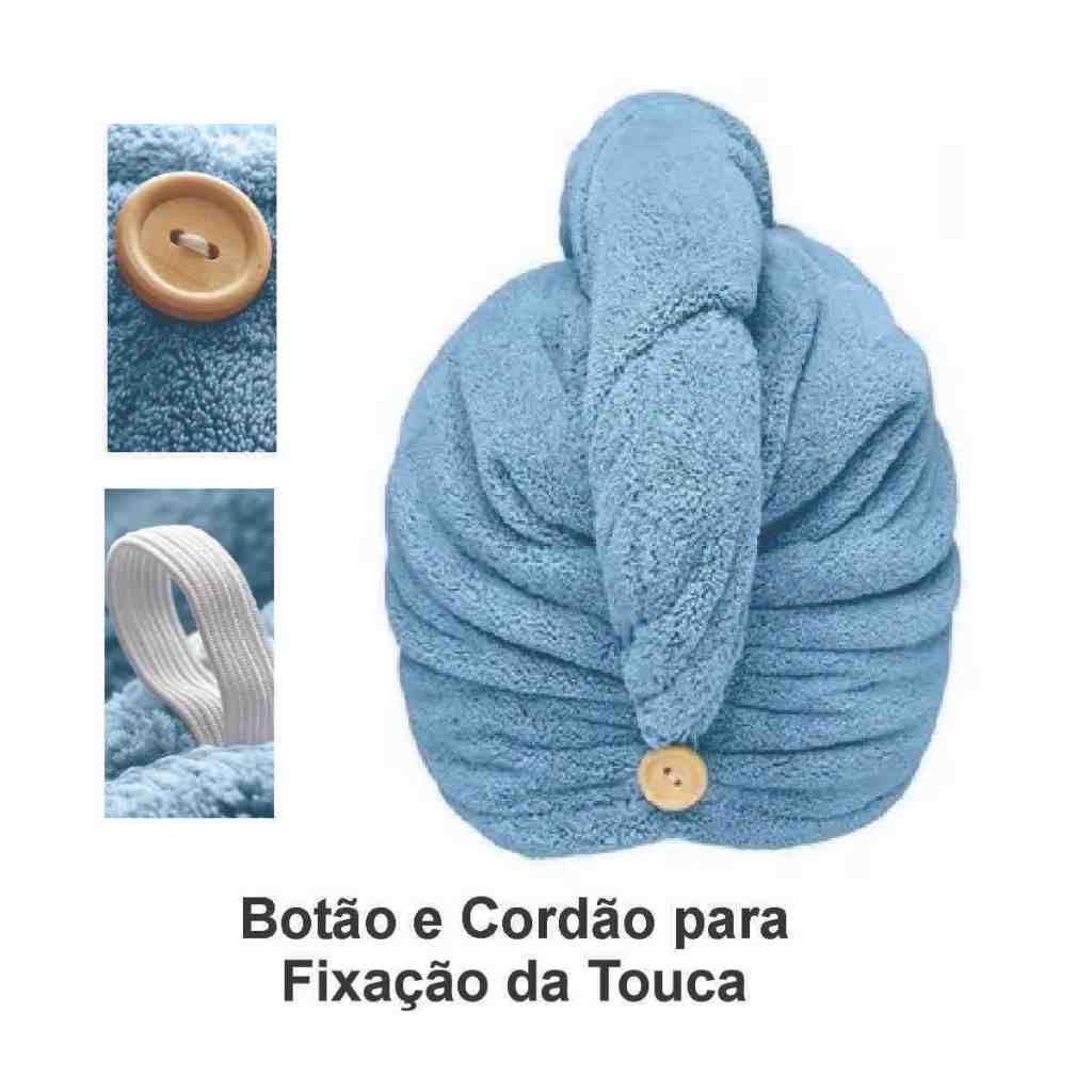 Touca de Banho Atoalhada Seca cabelo Ideal para Skincare, Pós Banho, Piscina, Praia, etc. Toalha desenvolvida para uma secagem rápida dos cabelos! Você não precisa mais ficar com aquela toalha de banho pesada na cabeça após lavar os cabelos, nossa touca é produzida em tecido de Microfibra, tecido super leve e sua modelagem permite o envolvimento de todo o cabelo que fica perfeitamente imóvel graças ao fecho com botão. Características: - Super compacta - Super leve - Material Ultra Absorvente de Microfibra - Fácil de usar, fixada na cabeça com cordão e botão - Lavável na máquina e reutilizável - Seca o cabelo rapidamente sem danificar - Adequada para todos tipos e comprimento de cabelos; Material: Tecido Microfibra 100% Poliéster Tamanho: 67 cm x 25 cm Cores: Preto, Branco, Marinho, Azul Claro, Roxo, Amarelo, Marrom, Caqui, Rosa Bebê e Vermelho. ATENÇÃO: NÃO É POSSÍVEL ESCOLHER A COR DA TOUCA. CORES ENVIADAS CONFORME DISPONIBILIDADE DE ESTOQUE. Garantimos que não será enviado cores repetidas. Cores Disponíveis: Preto, Branco, Marinho, Azul Claro, Roxo, Amarelo, Marrom, Caqui, Rosa Bebê e Vermelho.