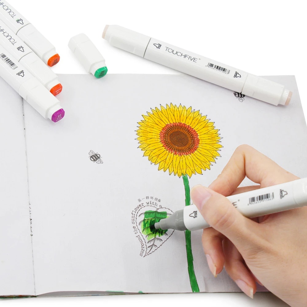 TouchFive Marcadores 24/36/48/60/80/100/120 Cores Manga Pincel Duplo Caneta Álcool Feltro Arte Material Escolar