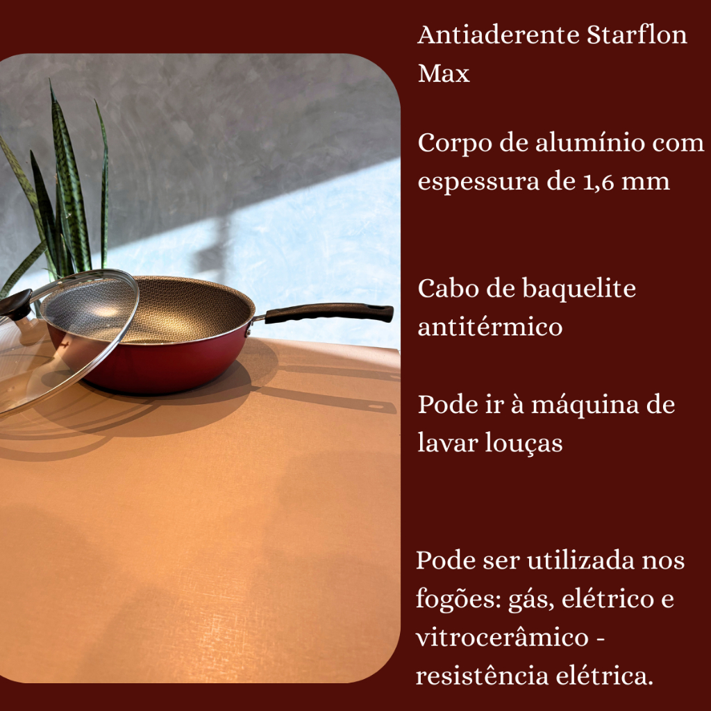 Frigideira Funda Tramontina Versalhes 28 cm 4,9 L Antiaderente Starflon Max com Tampa de Vidro Montre Mais espaço, mais praticidade! A Frigideira Funda Tramontina Versalhes 28 cm com tampa de vidro Montre é perfeita para quem busca uma frigideira funda e grande, ideal para frituras, risotos e receitas em maiores quantidades. DIFERENCIAIS > Corpo de alumínio com espessura de 1,6 mm: cozimento rápido e uniforme. > Revestimento interno e externo em antiaderente Starflon Max: não gruda, fácil de limpar, durável e livre de PFOA. > Cabo de baquelite antitérmico para manuseio seguro. > Acompanha tampa de vidro Montre com garantia de 90 dias pela Lojas Montre. > Disponível nas cores preta e vermelha. > Compatível com fogões a gás, elétricos e vitrocerâmicos (resistência elétrica). > Pode ir à máquina de lavar louças. O QUE ACOMPANHA 1 Frigideira Tramontina Versalhes Funda 28 cm – 4,9 L 1 Tampa de vidro Montre compatível (se selecionada nas variações) ESPECIFICAÇÕES TÉCNICAS Diâmetro: 28 cm Capacidade: 4,9 L (uso recomendado: até ¾ da capacidade) Espessura: 1,6 mm Revestimento: Starflon Max (classificação A – ótima, conforme INMETRO 499/2021) Garantia: 90 dias para vícios ou defeitos de fabricação + garantia da tampa Montre PERGUNTAS FREQUENTES * A frigideira funda serve para fritura? Sim, sua profundidade é ideal para frituras, além de risotos e receitas que exigem mais capacidade. * Acompanha tampa de vidro? Sim, acompanha tampa de vidro Montre grande, resistente e compatível. * Tem opção de cor preta? Sim, trabalhamos com opções preta e vermelha (verifique disponibilidade no momento da compra). * É funda e larga ao mesmo tempo? Sim, ela é funda e larga, permitindo preparar pratos maiores sem perder a uniformidade no cozimento. * Pode ser usada para risoto? Sim, sua profundidade é perfeita para risotos, refogados e molhos. * Quer que eu também otimize essa descrição para Shopee (sem emojis e bem objetiva) ou que eu padronize as descrições de todas as frigideiras e paelleras com essa estrutura SEO para Mercado Livre?