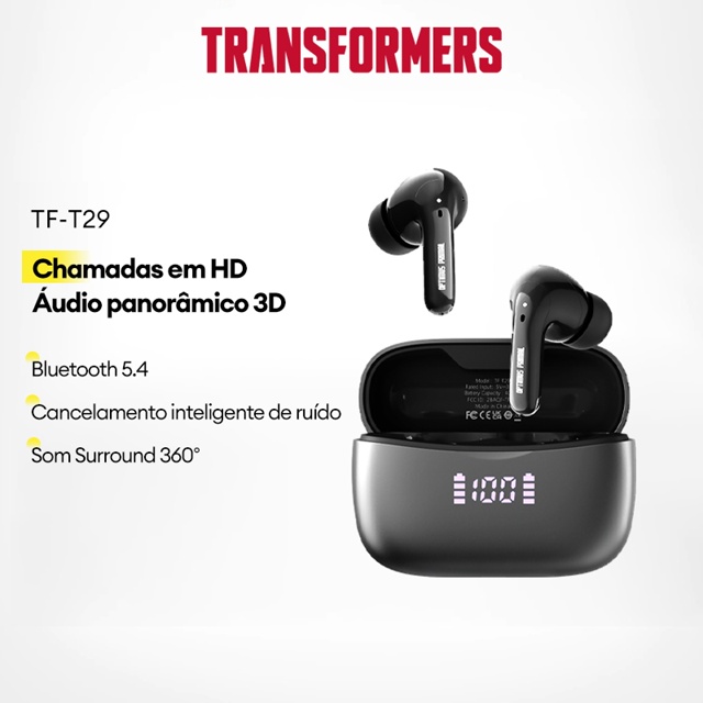 | Transformers TF-T29 Fone De Ouvido Bluetooth Cancelamento inteligen... este produto | R$ 92,99 | 38% | 5.0/5 | — |