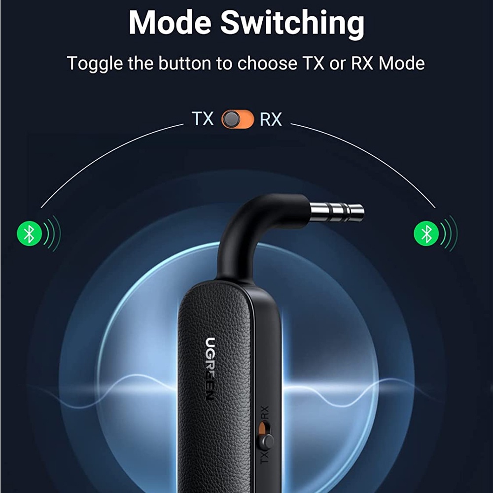 Ugreen Receptor e Transmissor Bluetooth 5.0 Suporte a Codec de Áudio Sbc e Aac Conector de 3,5mm Design Leve Compacto Fidelidade Sonora Modo TX e RX Conectividade Sem Fio Alta Versatilidade / No Brasil O avanço tecnológico levou à diminuição do uso de cabos e fios no meio tecnológico, graças ao Ugreen transmissor e receptor Bluetooth 5.0, você evita substituir seu antigo home theater, TV ou PC apenas porque eles serem inabilitados para Bluetooth; O adaptador Bluetooth sem fio 2 em 1 funcionará bem com suas TVs, PCs, home theaters, aparelhos de som automotivos, bem como MP4 players e com entrada de áudio de 3.5mm e possibilitará os transformar em dispositivos habilitados para Bluetooth; Além de um design compacto e leve, você ainda pode contar com um botão seletor de modo TX e RX, alta qualidade e fidelidade sonora, bem como a versatilidade de que precisa; Marca: Ugreen Cor do produto: Preto Referência do modelo: 80893 Tipo de Conector de Áudio: 3.5 mm Codec Suportado Modo Rx: Sbc, Aac Resposta de frequência: 2400Mhz-2483.5Mhz voltagem de carga limitada: 5.25V Alcance de transmissão: Até 10 metros Codec suportado Modo Tx: Sbc Itens inclusos 1x Receptor transmissor bluetooth Garantia: 90 dias