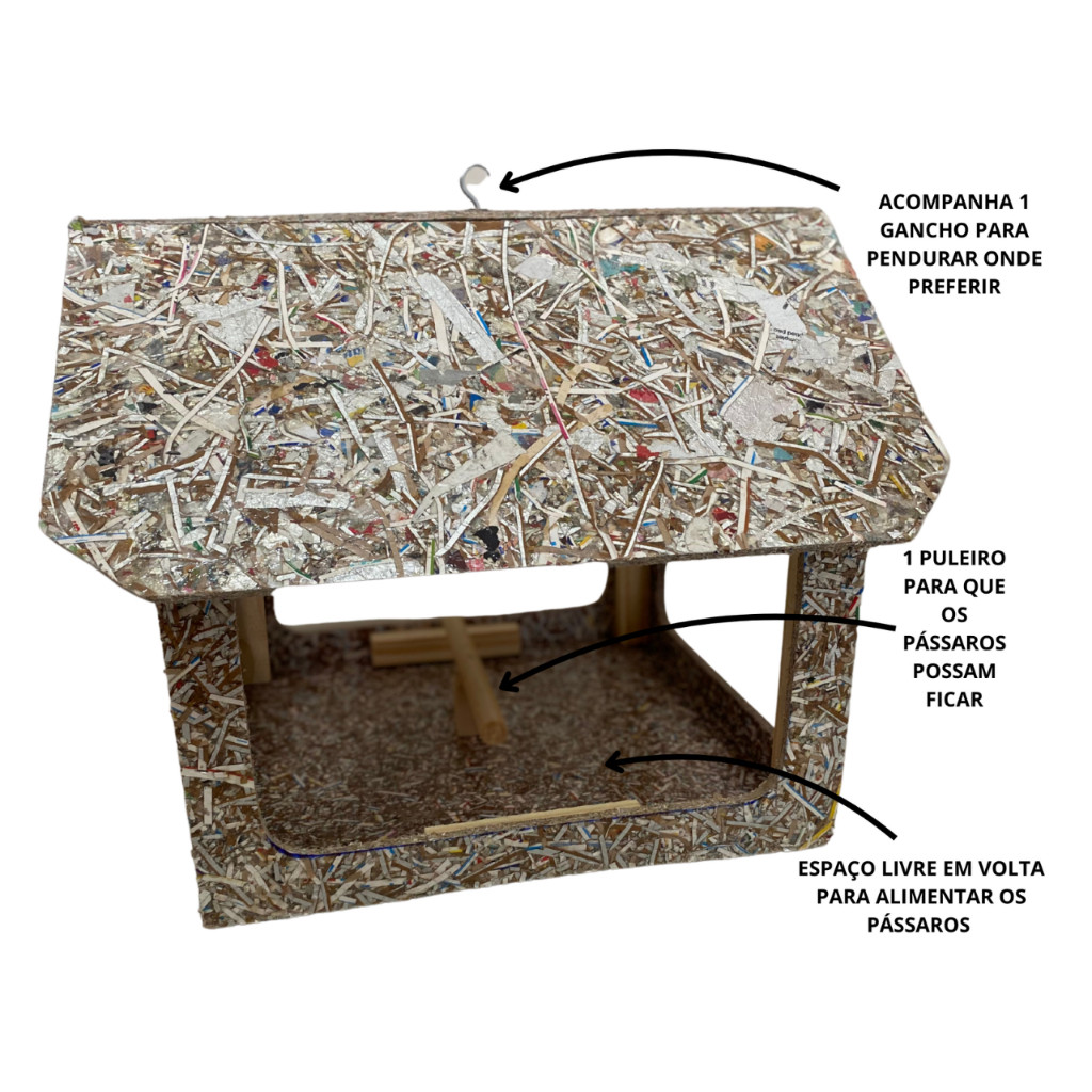 Tratador Comedouro Para Pássaros Silvestres Pássaros Livres em Madeira Ecológica Nº2 Material: Madeira Ecológica Acompanha: 1 Gancho para fixação onde você preferir, ideal para jardins, sitios, fazendas, chácaras. Comprimento: 44cm Largura: 39cm Altura: 39cm O Produto vai Montado.