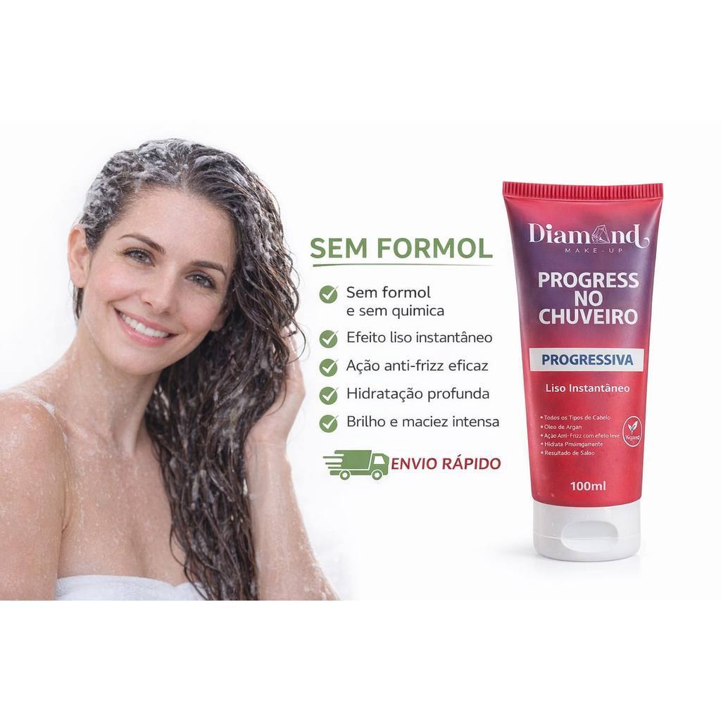 Tratamento Capilar Alinhador Progressiva de Chuveiro100ml Diamond, Sem Formol | Reduz Frizz Hidrata.