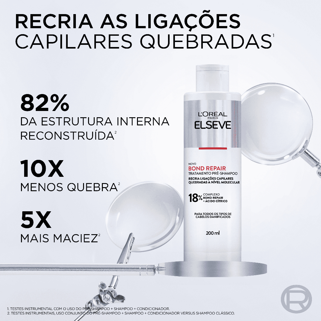 A linha Bond Repair de L’Oréal Paris contém em sua fórmula o Ácido Cítrico que age na camada mais profunda da fibra , o córtex, e recria as ligações capilares quebradas a nível molecular para cabelos transfomados e reparados a sua força original. Use o tratamento intensivo antes do shampoo para alcançar a reparação capilar mais profunda a nível molecular e completar a rotina Bond Repair. *Teste instrumental, após 5 aplicações do sistema pré-shampoo + shampoo + condicionador. Benefícios:- Recria ligações capilares quebradas a nível molecular. Tecnologia: o Ácido Cítrico que age na camada mais profunda da fibra, o córtex, e recria as ligações capilares quebradas a nível molecular para cabelos transformados e reparados a sua força original. Use o tratamento intensivo antes do shampoo para alcançar a reparação capilar mais profunda a nível molecular e completar a Rotina Bond Repair. Aplique uma quantidade generosa no cabelo úmido, do comprimento até as pontas, deixe agir por 5 minutos e enxágue.