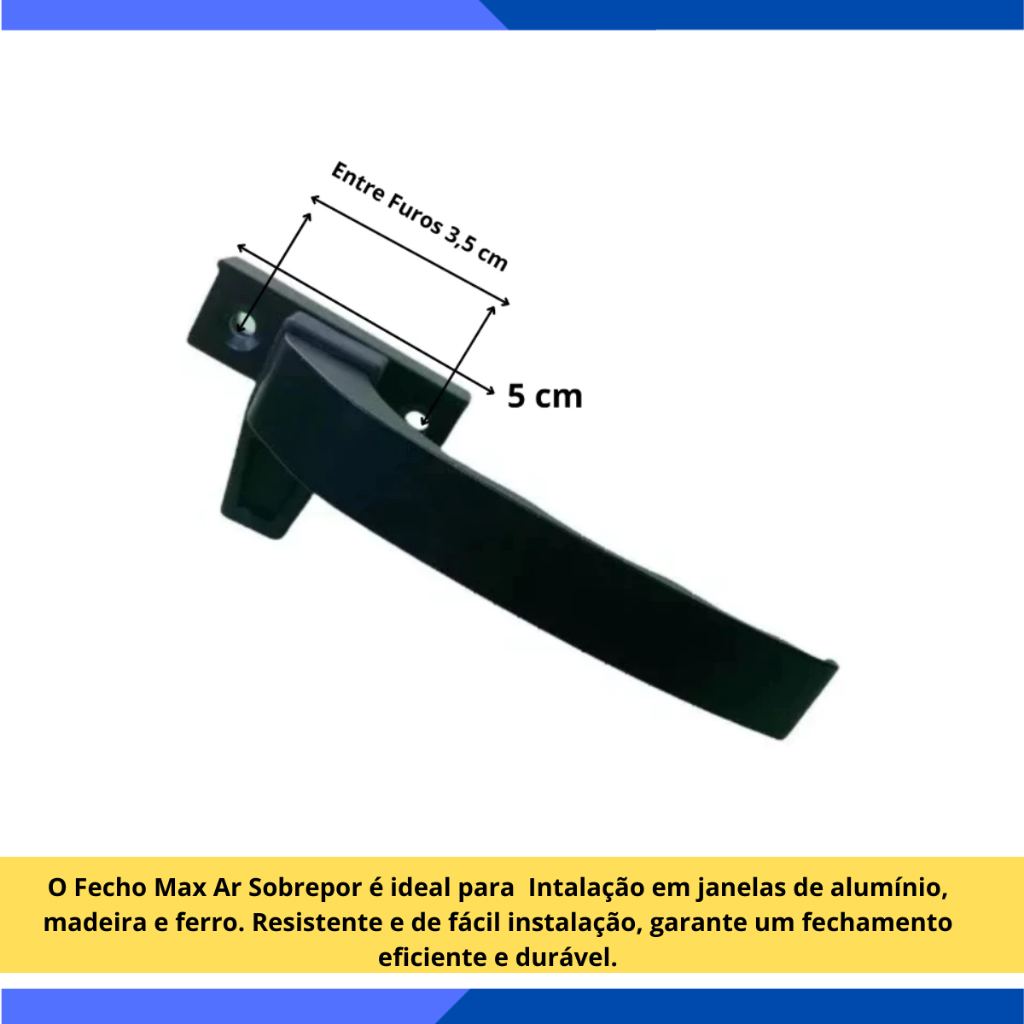 Trava Alavanca Para Maxim Ar Grande Para Janela de Alumínio Madeira Ferro Fecho Frontal Alavanca Maxim-ar Janela Alumínio Fecho para janela maxim ar de Alumínio Fecho para janela maxim ar de Madeira Fecho para janela maxim ar de Ferro Fecho fixado com auxílio de 2 parafusos na folhada janela .