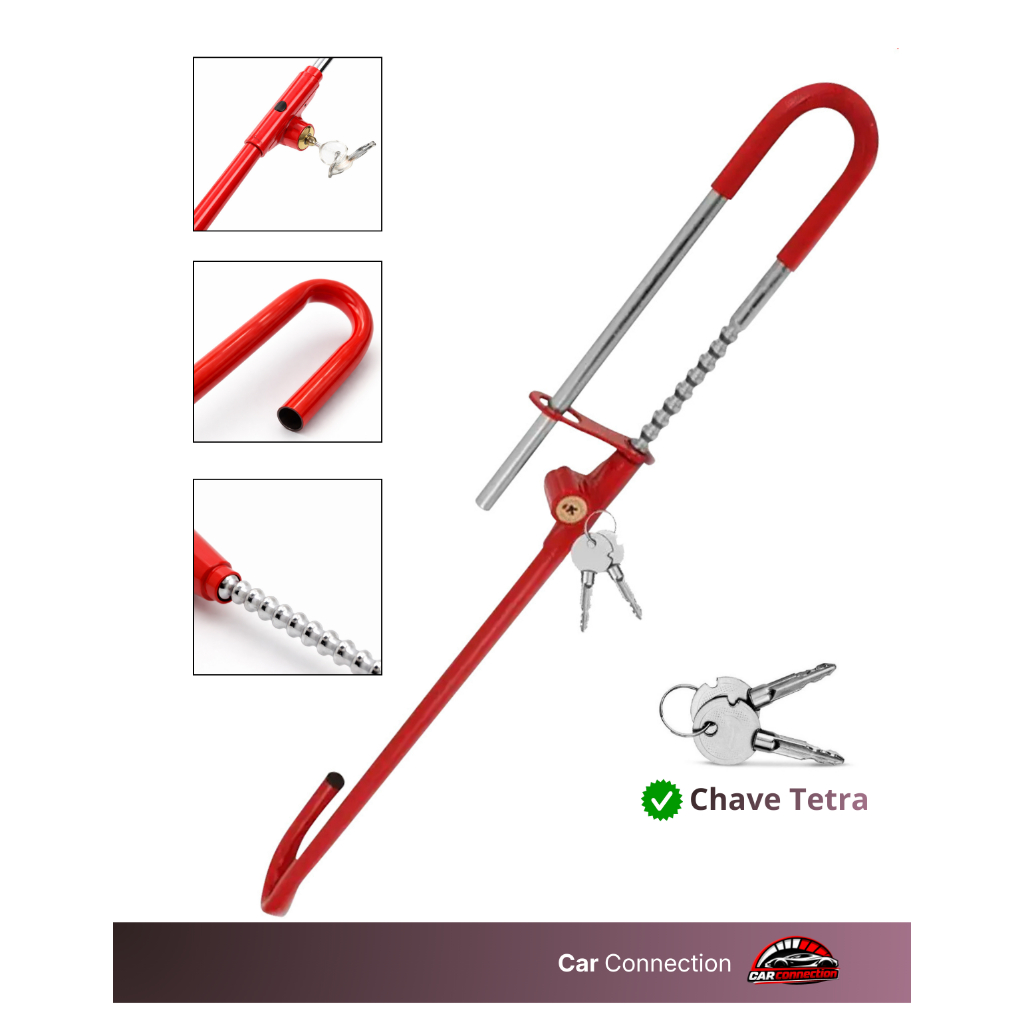 Trava Anti Furto Pedal Volante c/Algema Chave Tetra Universal Carneiro Reforçada Segurança