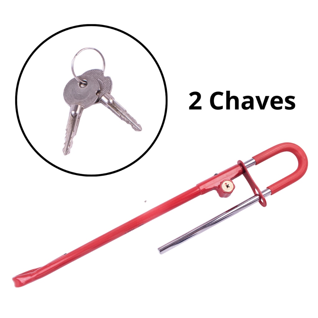 Referência APX0999 APLICAÇÃO: Universal CARACTERÍSTICAS Volante/ Pedal (com algema) * ANTES DA COMPRA, CERTIFIQUE-SE QUE ESSA PEÇA REALMENTE É PARA SEU VEÍCULO. * Produto Novo * Ótima Qualidade e Durabilidade * Todos os produtos acompanham Nota Fiscal emitida para o CPF/CNPJ informado na compra. * A instalação requer mão de obra especializada de sua preferência, não nos responsabilizamos por erros de instalação.