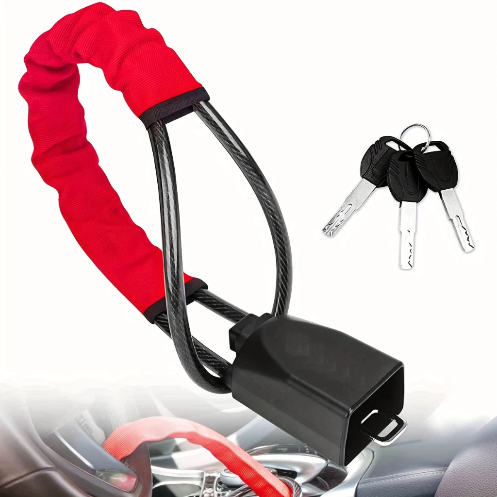 Trava Antifurto para Volante Carro Cinto Segurança Veiculo 3 Chaves A trava é feita de cabo de aço revestida com capa de nylon colorida, à prova d'água, sua cor vibrante oferece uma ótima visibilidade, funcionando como uma medida visual eficaz para dissuadir ladrões. Além disso, ela torna o seu veículo menos suscetível a roubo, incentivando potenciais ladrões a procurarem alvos mais fáceis. Especificação: - Material: Aço, PVC e Nylon - Comprimento: 72cm - Largura (considerando a trava): 5,5cm - Cor: vermelho Peso do produto: 560g Incluído no Pacote: - 1 Trava Volante Carro - 3 Chaves