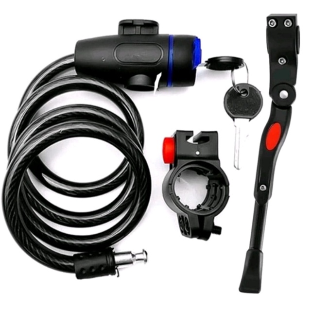 Trava Cabo De Aço Cadeado Segurança Bike Moto Espiral Anti-Roubo + Descanso Pezinho Para Bike Lateral Com Regulagem