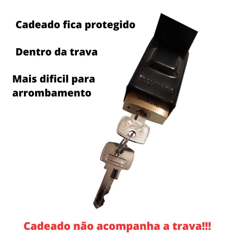 Trava para portão reforçada com porta cadeado 8,5cm x 5,5cm Tecnotrava