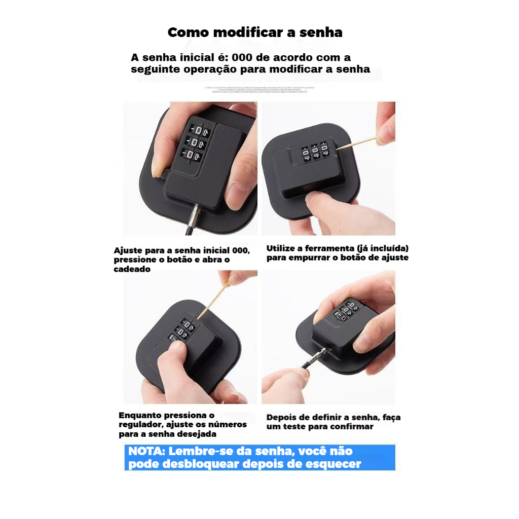 ************Bem-vindo à nossa loja***************** Essa fechadura adesiva é adequada para portas, janelas, armários, gavetas, geladeiras, etc. Ideal para impedir que crianças abram armários ou acessem determinadas áreas perigosas. Também serve contra ladrões ou curiosos para proteger a sua privacidade. Sua gaveta não possui chave? Estão assaltando a sua geladeira? É só colar a nossa tranca e você estará protegido de possíveis curiosos ou colegas de trabalho. A parte inferior da fechadura tem fita dupla-face, que é fácil de colar e bastante forte. Obs: todas as trancas possuem o mesmo segredo. Senha inicial: 000 ESPECIFICAÇÕES DO PRODUTO TIPO COM SENHA Liga de alumínio, superfície de galvanização de zinco liga, não deixar cair a tinta, durável. Peso líquido: 72g Tamanho do disco: 71mm x 71mm Comprimento do cabo: 18.8 cm Locais aplicáveis: gavetas, armários, geladeira, janelas, portas. Cor: Preto Senha inicial: 000 ITENS INCLUSOS: - 1 cadeado com senha com cabo de aço (base com fita adesiva dupla face) - 1 pino de ajuste - 1 manual APROVEITE O FRETE Aproveite o frete comprando mais produtos Para conhecer nossos produtos, clique em “ver mais anúncios do vendedor” e adicione todos os produtos que deseja no carrinho de compras.