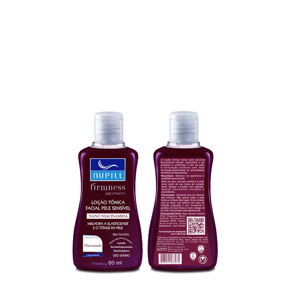 LINHA NUPILL NANO NIACINAMIDA A primeira linha completa com niacinamida para seu skincare diário para pessoas com manchas (hiperpigmentação) na pele, melasma, linhas de expressão, e pele sensível. Aliviando e prevenindo a vermelhidão da pele. Ativos: formulada com Niacinamida (vit. B3) nano encapsulada na concentração de 10% Benefícios: Reduz e previne manchas escuras na pele Uniformiza o tom da pele Reduz linhas de expressão Reduz e previne a vermelhidão da pele sensível ou sensibilizada. Hipoalergênica Como aplicar: 1. Aplique o Sabonete no rosto e pescoço, massageando suavemente e enxágue. 2. Tonifique a pele com o tônico facial Nupill Nano Niacinamida com o auxílio de um algodão, fazendo movimentos circulares e ascendentes. 3. Proceda com a aplicação do Sérum facial Nupill Nano Niacinamida com eficácia comprovada para finalizar