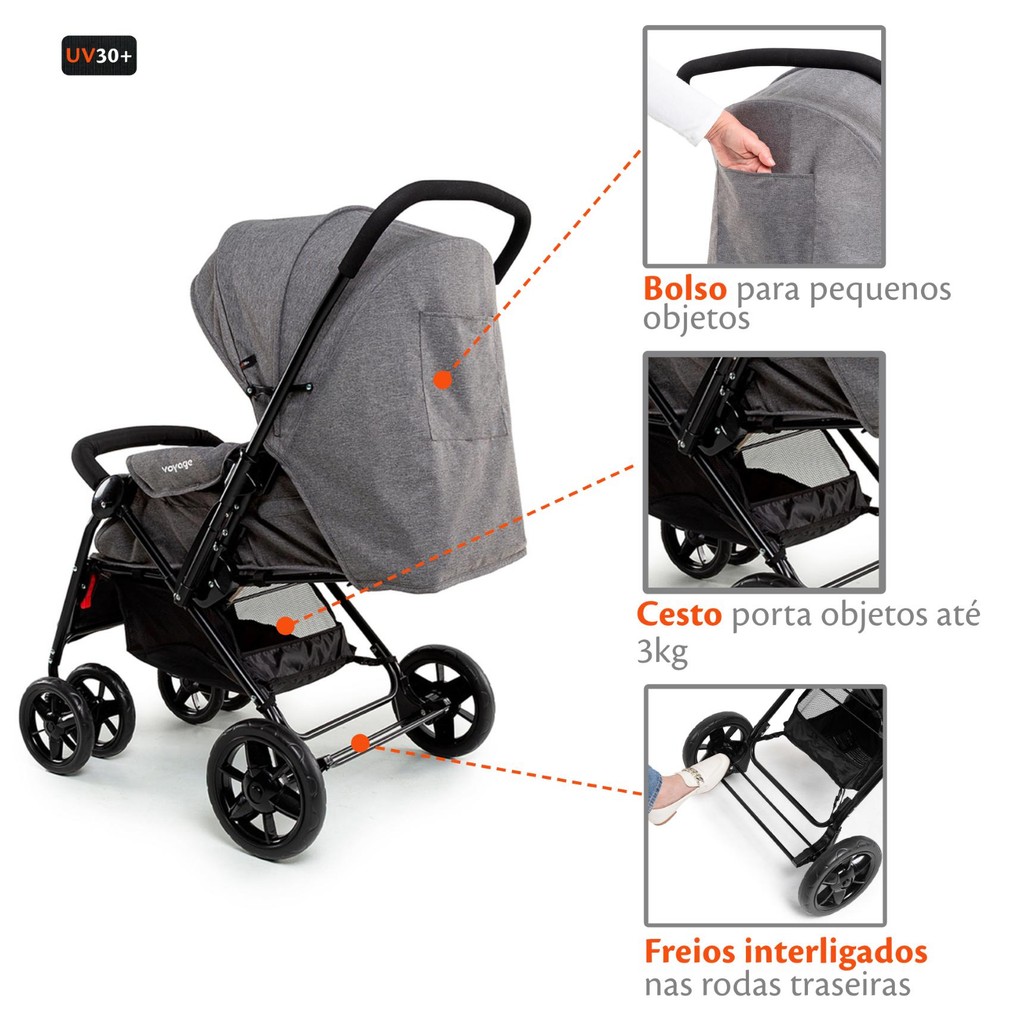 Travel System Choice Voyage – Carrinho com Alça Reversível + Bebê Conforto Beta Conjunto completo e versátil, ideal desde o nascimento. O carrinho Choice tem alça reversível, capota com proteção UV FPS 30+, assento reclinável em 3 posições (inclusive deitada) e apoio de pés ajustável. O bebê conforto Beta é leve, tem alça com 4 ajustes, almofada redutora, capota removível, cinto de 3 pontos com protetores e capa lavável. Conheça mais Características: - Alça reversível: bebê virado para os pais ou para o mundo - 3 posições de Inclinação do assento: 1 para recém-nascidos e 2 para os maiorzinhos - Colchonete macio super acolchoado e removível para lavar - Cinto de 5 pontos - Apoio de pés com 2 posições de ajuste - Barra frontal macia e com abertura - Capota ampla e retrátil com proteção FPS UV 30+ - Bolso na capota para pequenos objetos - Cesto com capacidade para até 3 kg - Rodas dianteiras duplas com trava de giro 360 ° e freios - Freio nas rodas traseiras mais fácil de acionar em um único ponto - Fechamento envelope com trava lateral de transporte Modelos Compatíveis: - Bebê conforto Beta, Voyage ( Incluso) - Base bebê conforto Beta, Voyage ( Não Incluso) Especificações: - Isofix : Não - Tipo de fechamento: Envelope - Idade indicada: 0 a 6 meses ( Bebê conforto) - Idade indicada: 0 a 15kg ( Carrinho) - Material: Ferro, PP, PU e PES - Peso do Produto: 8,5 - Dimensões: 96 x 48 x 89 - Instalação Bebê Conforto: Cinto de Segurança - Garantia: 6 meses (Garantia Padrão) + 6 meses (Garantia Estendida* ) - Conteúdo da embalagem: 1 carrinho, 1 bebê conforto, 1 par de adaptadores, 2 manuais *Bebê conforto aprovado pelo INMETRO conforme a norma ABNT NBR 14.400 para crianças do nascimento aos 13kg (Grupo 0+). *Carrinho aprovado pelo INMETRO conforme a norma ABNT NBR 14.389 para crianças do nascimento até 15 kg. *Registre seu produto no site da marca e ganhe garantia estendida de mais 6 meses, totalizando 1 ano * Todos os produtos acompanham Nota Fiscal Eletrônica