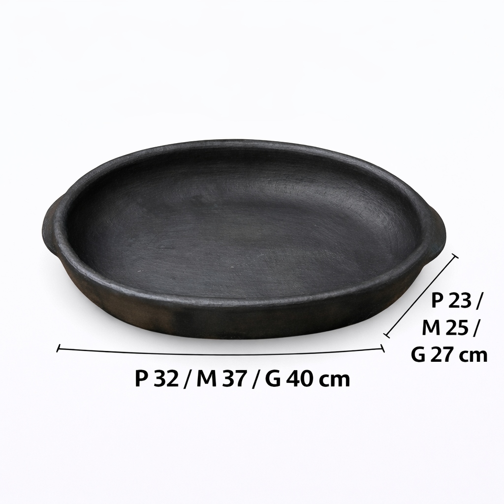 Travessas de Barro Preta Capixaba Artesanal – Oval / Retangular 📏 Tamanhos disponíveis (Medidas aproximadas) 🔹 Travessa Oval P: 32 cm (comprimento) x 23 cm (largura) x 8 cm (altura) M: 37 cm (comprimento) x 25 cm (largura) x 8 cm (altura) G: 40 cm (comprimento) x 27 cm (largura) x 9 cm (altura) 🔹 Travessa Retangular P: 32 cm (comprimento) x 23 cm (largura) x 8 cm (altura) M: 37 cm (comprimento) x 26 cm (largura) x 8 cm (altura) G: 40 cm (comprimento) x 29 cm (largura) x 9 cm (altura) As travessas de barro artesanais são ecológicas, seguras para a saúde e ideais para quem valoriza sabor, tradição e beleza à mesa. Produzidas de forma artesanal, não liberam resíduos nocivos, não alteram o sabor nem a cor dos alimentos e mantêm suas receitas quentes por muito mais tempo. Além da funcionalidade, essas travessas trazem um charme rústico e sofisticado, perfeitas para servir carnes, massas, peixes, moquecas, legumes e diversos pratos direto à mesa. ✅ Principais benefícios ✔ Produto ecológico e atóxico ✔ Mantém o calor por mais tempo ✔ Não altera sabor, cor ou aroma dos alimentos ✔ Alta durabilidade ✔ Uso versátil: forno, fogão e mesa (conforme orientação de uso) ✔ Acabamento artesanal exclusivo 🧼 Cuidados e limpeza A limpeza é simples: 1. Utilize esponja macia, detergente neutro e água 2. Para comidas com odores mais fortes, ferva água com bicarbonato de sódio na travessa 3. Nunca lave a peça quente — aguarde esfriar completamente para evitar choque térmico e rachaduras ⚠️ Informações importantes Produto 100% artesanal, sujeito a pequenas variações de tamanho, formato e tonalidade, o que torna cada peça única. Uso correto garante maior durabilidade e melhor desempenho ao longo do tempo.