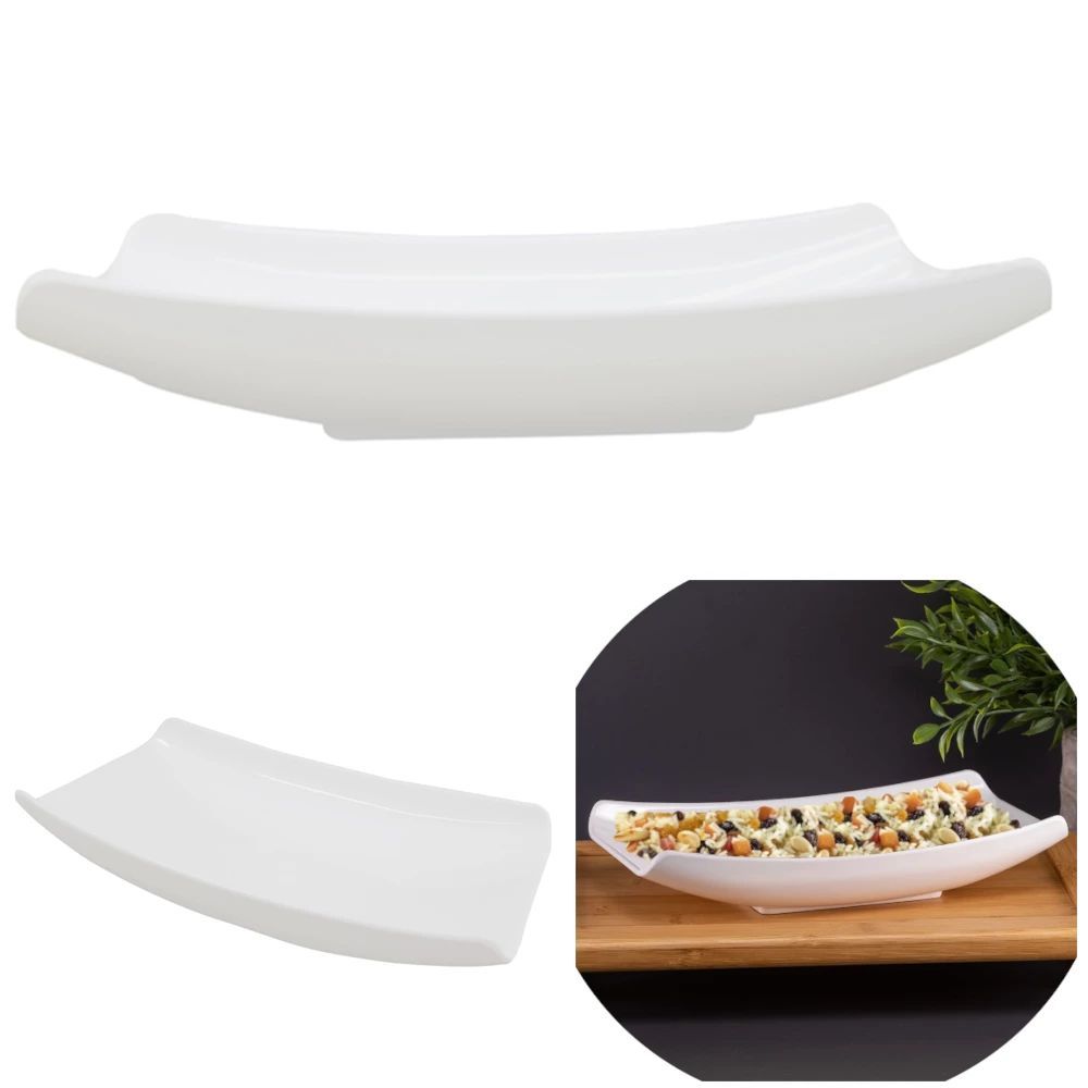 Travessa Curva 30cm Branca para Servir Finger Food e Aperitivos Melamina Premium