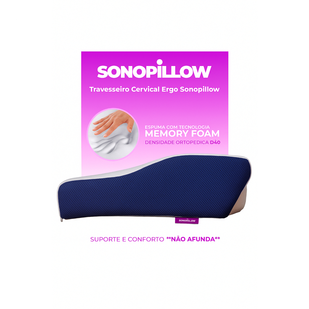 O Travesseiro Ergonômico Sonopillow Cervical Original® é a escolha perfeita para quem busca conforto e saúde durante o sono. Seu design inovador proporciona o suporte ideal para a região cervical, garantindo uma postura correta e alinhada, ajudando a aliviar dores e desconfortos. Seu enchimento de espuma viscoelástica, também conhecida como memory foam, se molda perfeitamente ao contorno do corpo, oferecendo um apoio personalizado. Além disso, o travesseiro é antibacteriano, antimofo e antiácaros, sendo hipoalergênico e seguro para pessoas com sensibilidade. Principais características: - Design ergonômico: molda-se de forma natural à anatomia do pescoço, garantindo um posicionamento adequado durante o sono. - Material de alta qualidade: fabricado com espuma viscoelástica de alta densidade, que oferece suporte firme e confortável. - Capa removível em tecido soft plush: possui zíper para facilitar a remoção e a lavagem, mantendo o travesseiro sempre limpo e higiênico. - Garantia de 1 ano: confiamos tanto na qualidade do nosso produto que oferecemos 1 ano de garantia contra defeitos de fabricação. Benefícios adicionais: - Ajuda a reduzir dores cervicais e desconfortos durante o sono. - Melhora a qualidade do sono, proporcionando um descanso mais profundo e reparador. - Recomendado por profissionais de saúde, como fisioterapeutas e ortopedistas, para prevenção e tratamento de problemas cervicais. Seu travesseiro será entregue na caixa e enroladinho, o que garante a integridade do produto durante o transporte. Experimente o Travesseiro Ergonômico Sonopillow Cervical Original® e tenha noites de sono reparadoras e confortáveis.