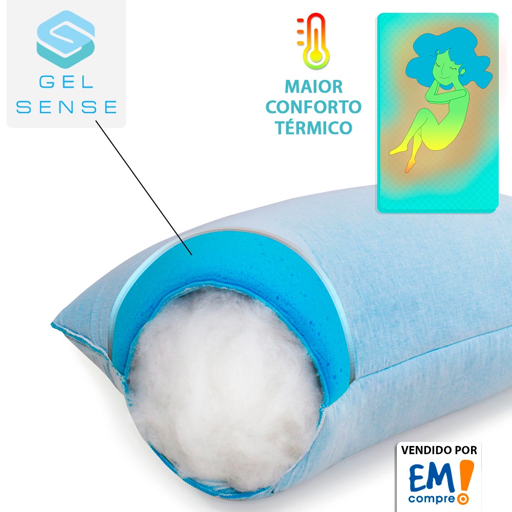 Travesseiro Alto de Espuma Nasa Conforto Térmico Gelsense Fibra Siliconada Antialérgico BF Colchões