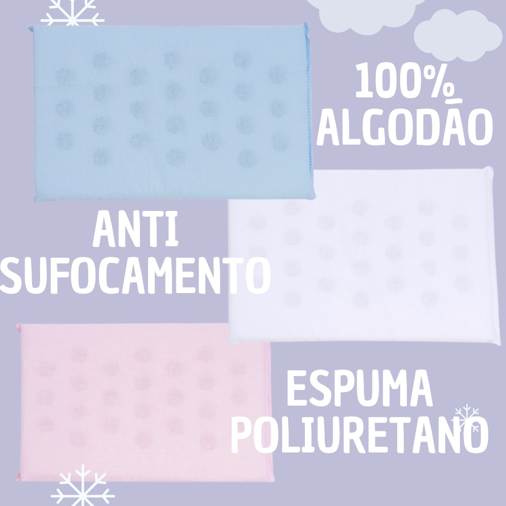 Travesseiro Bebe Anti sufocante Liso e Estampado da Papi