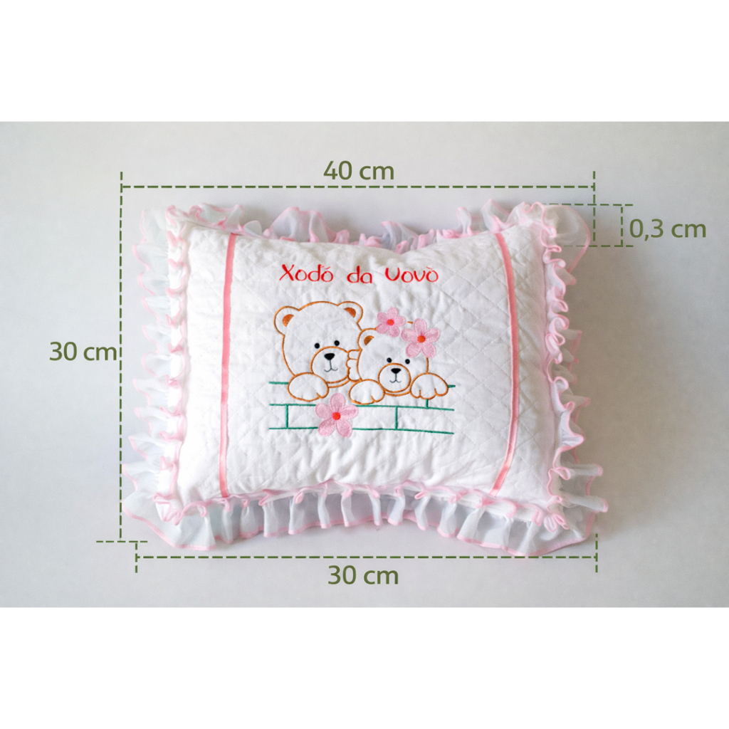 Travesseiro Bebe Infantil Confortável Macio usado já nos primeiro meses item básico para seu enxoval A capa e feita no tecido de microfibra matelado com bordado babado de voal em volta Conteúdo- 1 Capa 40 X 30 X 0,3 CM 1 Refil Capa: Microfibra Lavável (Pode Retirar) Enchimento 100% Polipropileno TNT (Refil do enchimento) 100% Fibra De Siliconadas