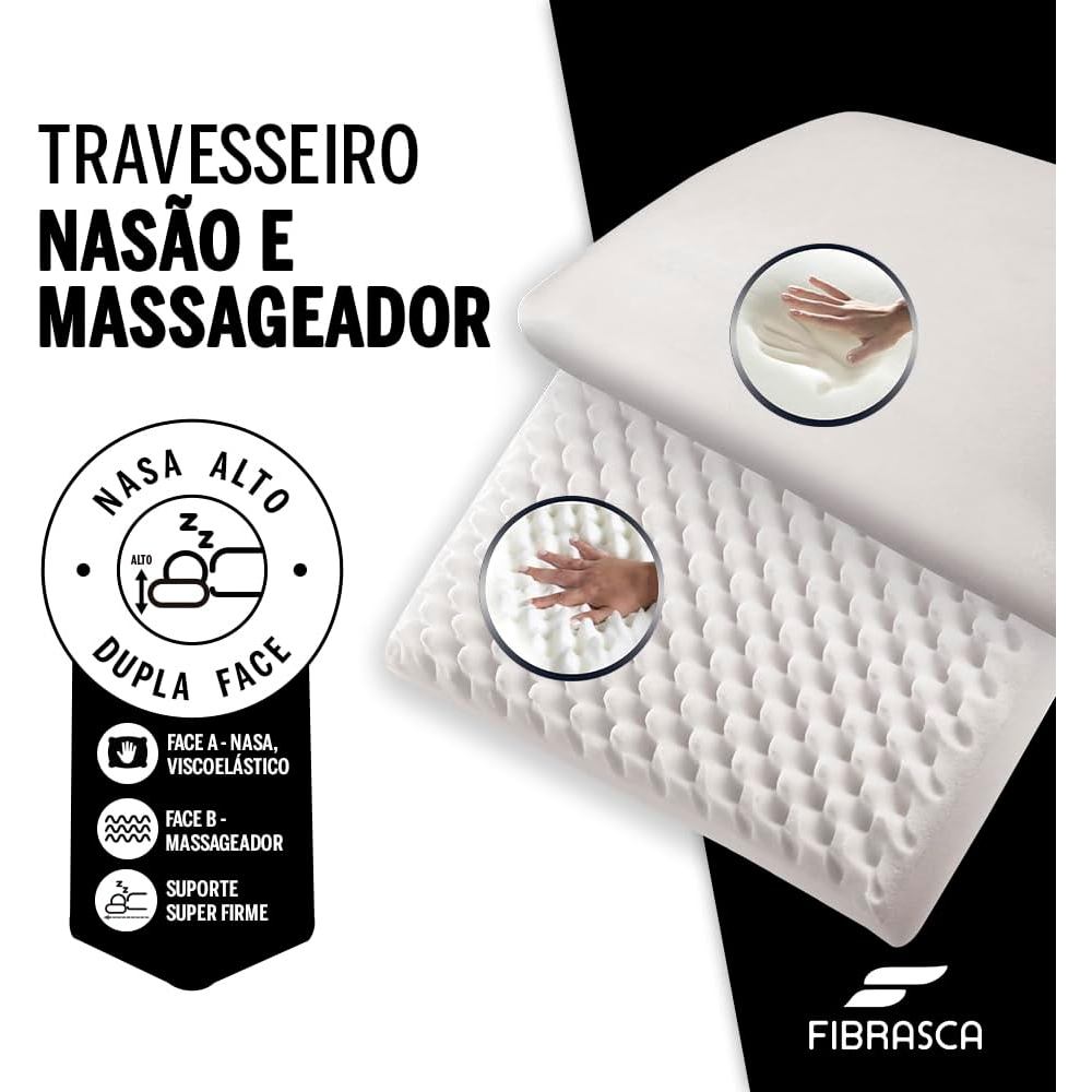 Travesseiro Fibrasca Nasa E 2 Lados De Conforto Com Toque Massageador Nasão Cor Branco