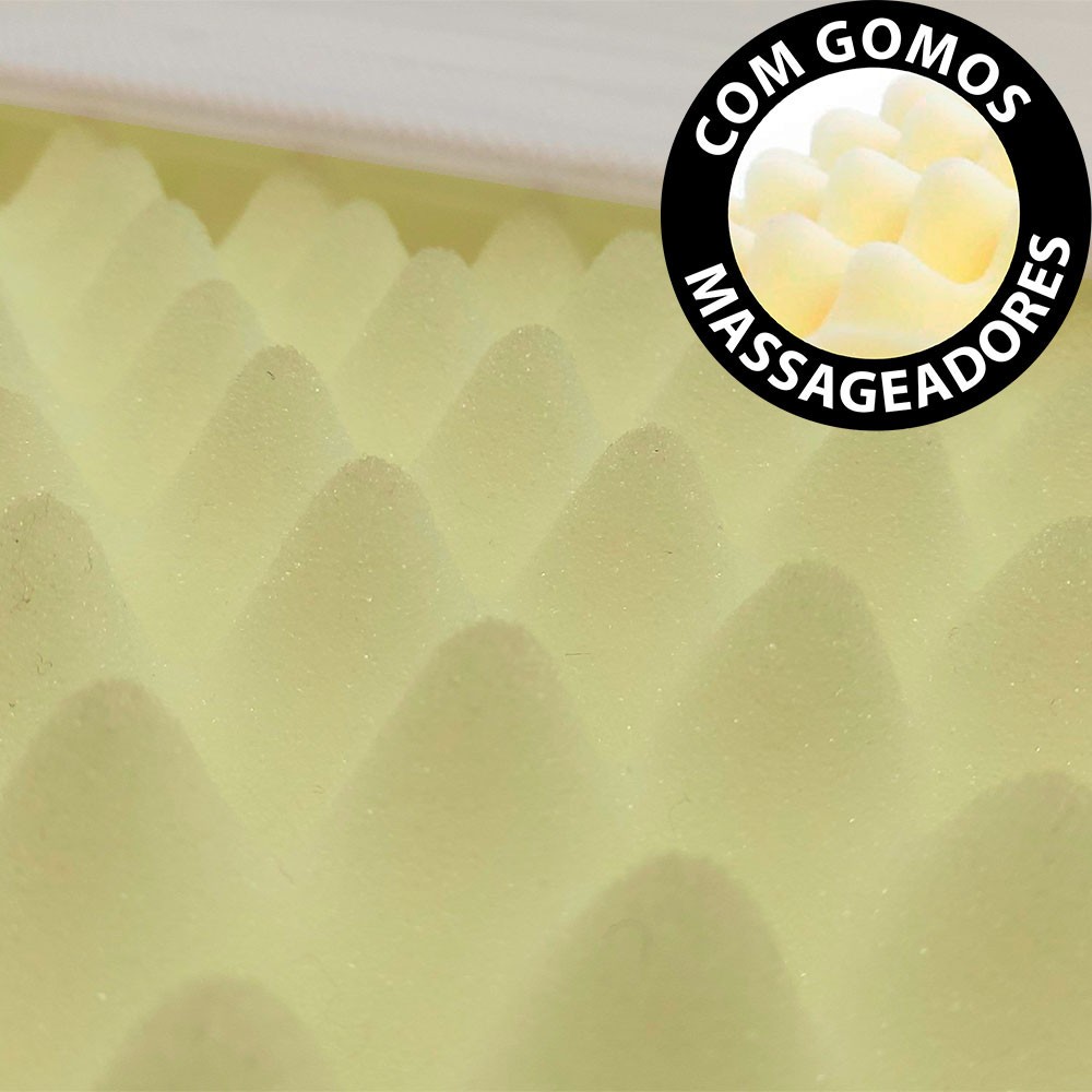 Esse travesseiro firme, produzido com Espuma Soft, exclusiva da BF Colchões, oferece um conforto extra, devido ao seu formato anatômico que proporciona o suporte ideal durante o sono. Os gomos massageadores proporcionam uma sensação relaxante, massageando suavemente sua cabeça e pescoço conforme você se movimenta durante a noite, promovendo o alívio das tensões musculares. Desfrute de noites de sono relaxantes e acorde com energia renovada para aproveitar o dia ao máximo. Características: - Revestimento: Percal 180 Fios (50% algodão - 50% poliéster). - Composição: Espuma Soft com design de gomos massageadores. - Dupla Face: Use dos dois lados. - Produto Hipoalergênico. - Medidas: 50 cm x 70 cm x 9cm. - Marca: BF Colchões.