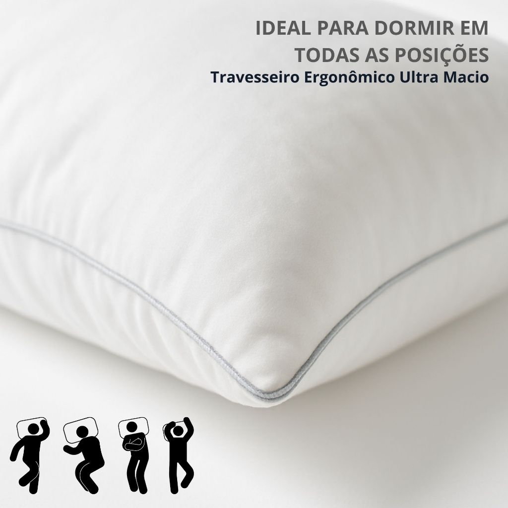 Travesseiro Toque De Pluma Ultra Macio Antialérgico Ergonômico Capa 100% Algodão 233 Fios Hotel