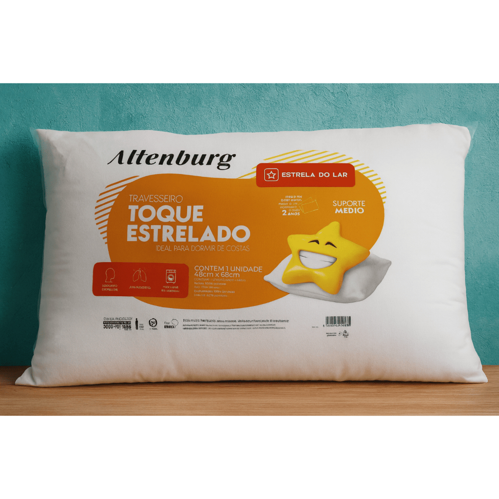 Travesseiro Toque Estrelado 48cm x 68cm Branco | Altenburg - Conforto e Qualidade para o Seu Sono Descubra o conforto do Travesseiro Toque Estrelado da Altenburg, ideal para quem dorme de costas. Com suporte médio e toque extra macio, este travesseiro oferece a combinação perfeita entre sustentação e suavidade. Medindo 48cm x 68cm, é feito com tecido 100% poliéster e enchimento antialérgico, garantindo noites tranquilas e seguras. * Suporte médio* Hipoalergénico e sem perfume* Lavável na máquina* Garantia de 2 anos* Produto nacional com qualidade Altenburg Perfeito para complementar o seu enxoval com elegância e bem-estar. Encomende já o seu Travesseiro Toque Estrelado Branco e transforme sua noite de sono!