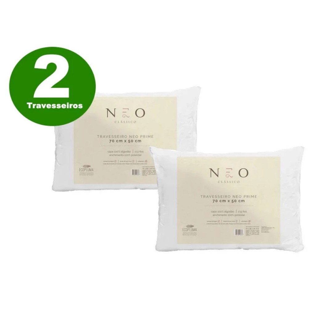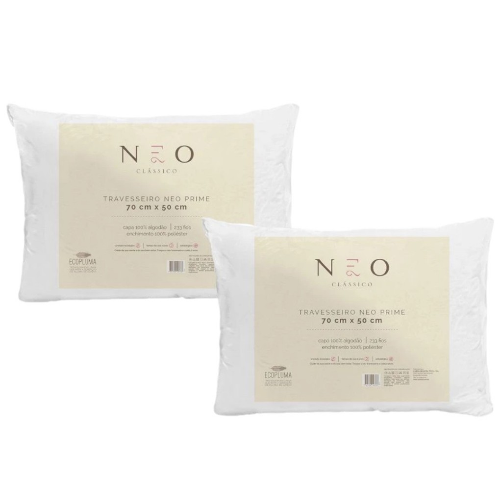 Travesseiros Neo Prime Kit C/ 02 Travesseiros Ecopluma 100% Algodão 233 Fios - Camesa 50x70