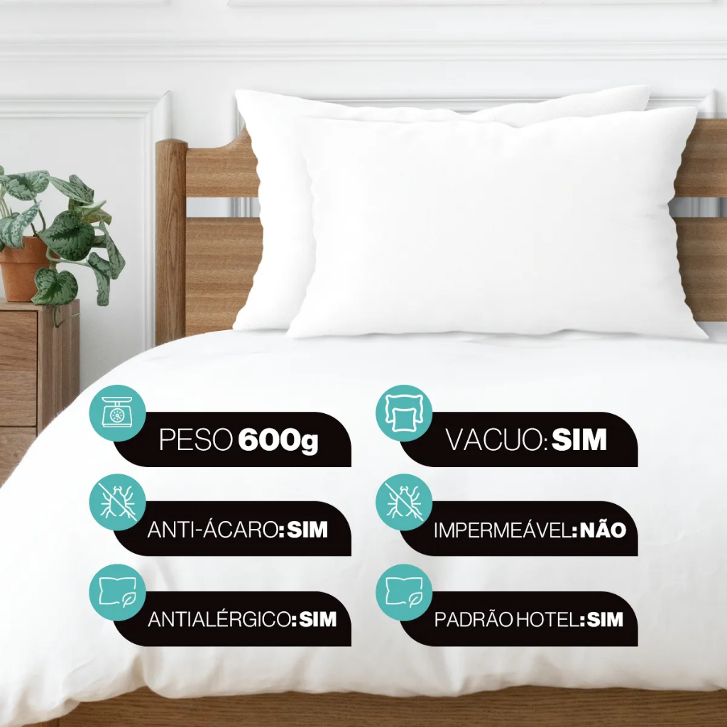 Travesseiros Prime Percal 200 Fios 70x50cm Fibra Siliconada Hipoalergênico Branco
