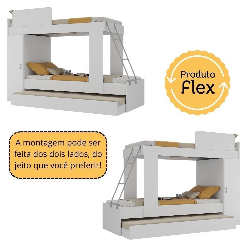 Com capacidade para acomodar irmãos que dormem no mesmo quarto ou visitas de final de semana, o Treliche para colchão 78 x 188 cm Multimóveis Branco é perfeito para otimizar o espaço disponível. É produzido em MDP com pintura UV acetinada, garantindo durabilidade e resistência, suporta até 80kg nas camas principais e 70kg na cama auxiliar, possui barra de proteção na cama superior para evitar quedas, além de uma porta lateral com prateleira interna, oferecendo amplo espaço para organizar pertences. A escada metálica em ângulo facilita o acesso à cama superior, tornando sua utilização prática e segura. Versátil, pode ser montado dos dois lados - esquerdo ou direito. NÃO acompanha colchão (tamanho indicado do colchão: 188 x 78 cm). Conteúdo da Embalagem: 1 (um) Treliche Kit Ferragem Manual de Montagem Dimensões do produto montado: Altura: 165cm | Largura: 229,5cm | Profundidade: 87cm *Você pode consultar as medidas detalhadas na imagem técnica do produto. *Obrigatório fixar o treliche na parede. *As cores do produto podem sofrer variações de tonalidade de acordo com as configurações do seu dispositivo. Imagem meramente ilustrativa. Decoração não acompanha o produto. O produto será entregue desmontado e não disponibilizamos o serviço de montagem.