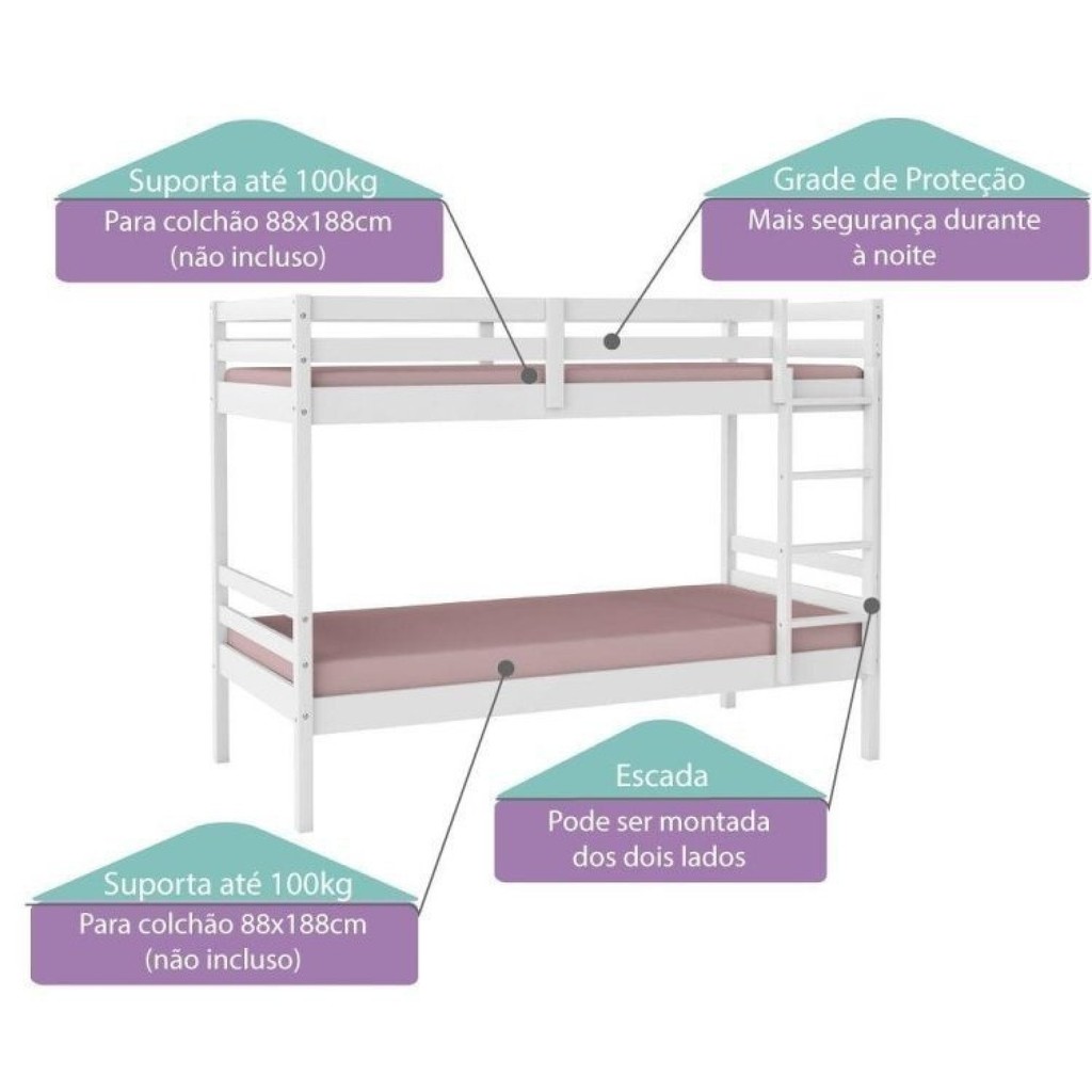 Sempre pensando em despertar a imaginação dos pequenos, a Casatema desenvolveu o Treliche Teen Play Casinha, um móvel para encantar os meninos e meninas, para fazer do quarto o lugar mais divertido e animado da casa! Essa peça é para acomodar 3 crianças em idades distintas ou não. O grande diferencial dessa cama é que ela possui duas opções de montagem, pois é possível usá-la como beliche ou como duas cama solteiro! A cama superior conta com grade em todo o redor garantindo maior segurança. Além disso, é possível transformar o beliche em duas camas de solteiro. E sob toda essa incrível estrutura, fica a cama auxiliar com 2 rodinhas de fácil manuseio. Garantia: 06 Meses Acabamento: Verniz Tipo de Cama: Treliche Possui Portas: Não Acompanha Colchão: Não Ambiente Principal: Quarto Infantil Fabricação Própria: Sim Material Principal: Madeira Maciça Marca: Casatema Tonalidade: Branco Cor: Branco Cor Predominante: Branco Linha ou Coleção: Teen Play