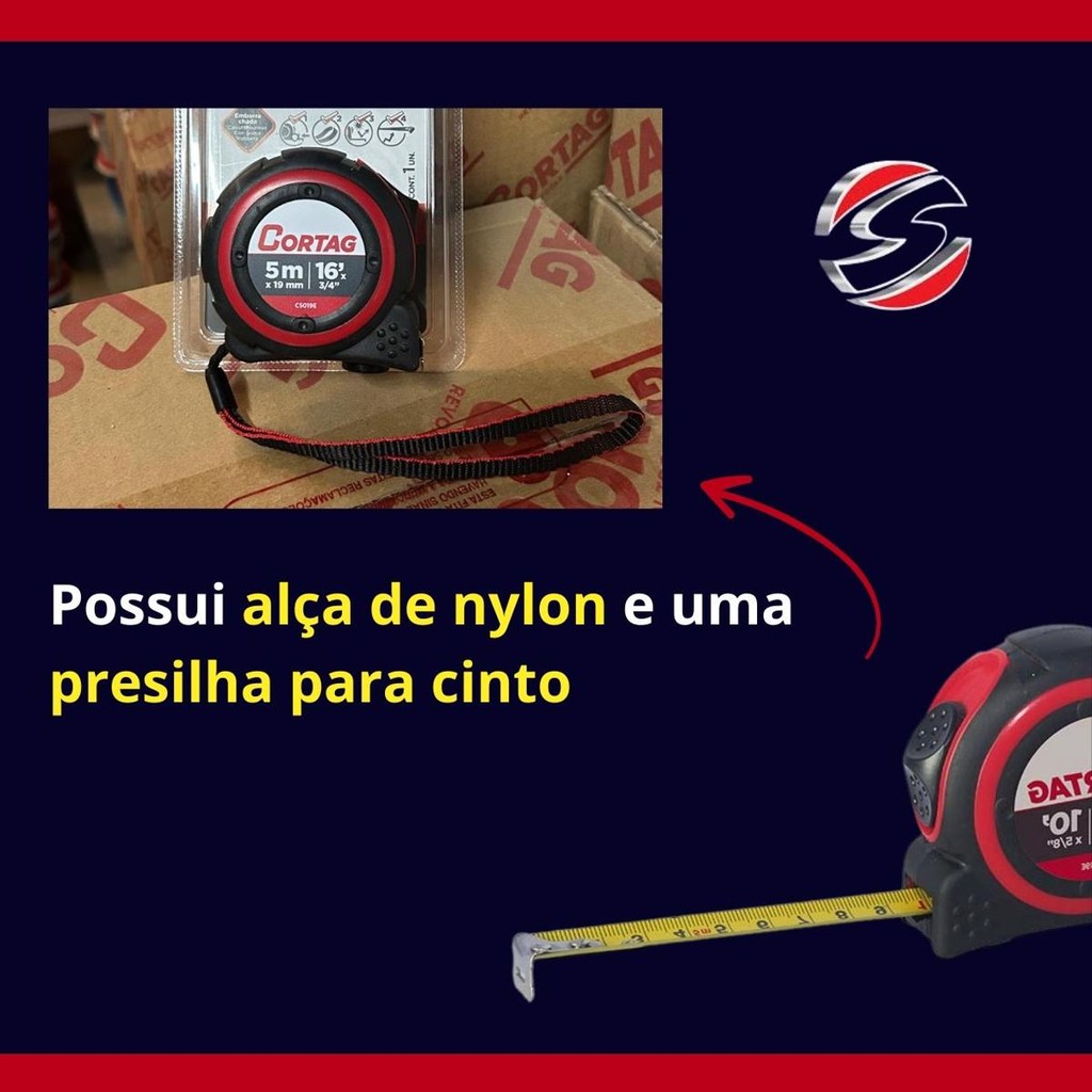 Trena Cortag Emborrachada 5m X 19mm Fita em Aço Profissional ...................................................................... INFORMAÇÃO SOBRE O PRODUTO ...................................................................... Ferramenta ideal para profissionais que buscam precisão e durabilidade em suas medições. Tem comprimento de 5 metros e uma largura de 19mm. Oferece uma escala ampla para medições extensas, garantindo resultados confiáveis em diversos tipos de projetos. A fita é revestida com uma pintura fosca antirreflexo, o que facilita a leitura dos números em ambientes com muita luz,evitando reflexos que podem causar erros de medição. Além disso, a trena possui uma alça de nylon resistente e uma presilha para cinto, proporcionando maior praticidade e segurança ao transportar e manusear a ferramenta. O modelo Trena Abs Longa Fita Larga da Cortag é sinônimo de eficiência e qualidade para os profissionais mais exigentes. ..................................................................................................................................... LOJA ..................................................................................................................................... O grupo SOLUWAN atua neste mercado há mais de 30 anos, possuindo loja física e online. Com 30 anos de história procuramos atender nossos clientes com agilidade, competência, ética e honestidade. Vendemos somente produtos novos e de qualidade garantida. Despachamos em até 24 horas. Entregamos para todo o Brasil. .................................................................................................................................... DÚVIDAS FREQUENTES ..................................................................................................................................... Pergunta: Como é embalado o produto? Resposta: Todos os nossos produtos vendidos são embalados em caixas lacradas ou plástico stretch. Em respeito ao meio ambiente 90% das caixas são reutilizadas. Pergunta: Quem faz a entrega? Resposta: A entrega é terceirizada, feita via CORREIOS ou TRANSPORTADORA. Pergunta: O envio é feito em quantos dias? Resposta: Nós enviamos o seu pedido no prazo máximo de 24 horas após a confirmação de sua compra, sendo um dos envios mais rápidos da plataforma. Pergunta: Os produtos são novos ou usados? Resposta: Todos os produtos que trabalhamos são novos e com qualidade garantida. ..................................................................................................................................... #fitamedidora #fitafosca #fitaqualidade #cortag #qualidade #original #fitacortag #fitametrica #medir #cortador