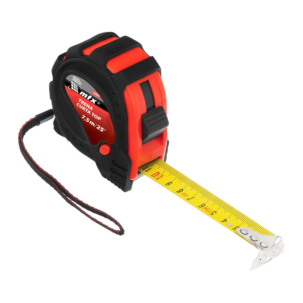 TRENA CURTA 7,5 M, 25MM, EMBORRACHADO, FITA DE METAL COM GANCHO MAGNETICO, 1 PC // MTX