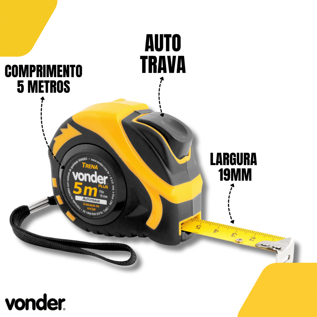 | Trena De Aço Vonder Plus 5 Metros e 10 Metros Auto Trava este produto | R$ 19,90 | 33% | 4.9/5 | 176 |