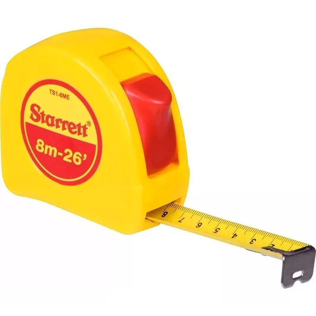 Trena de Bolso 8 Metros Starrett com Trava Milímetros e Polegadas STS1-8ME