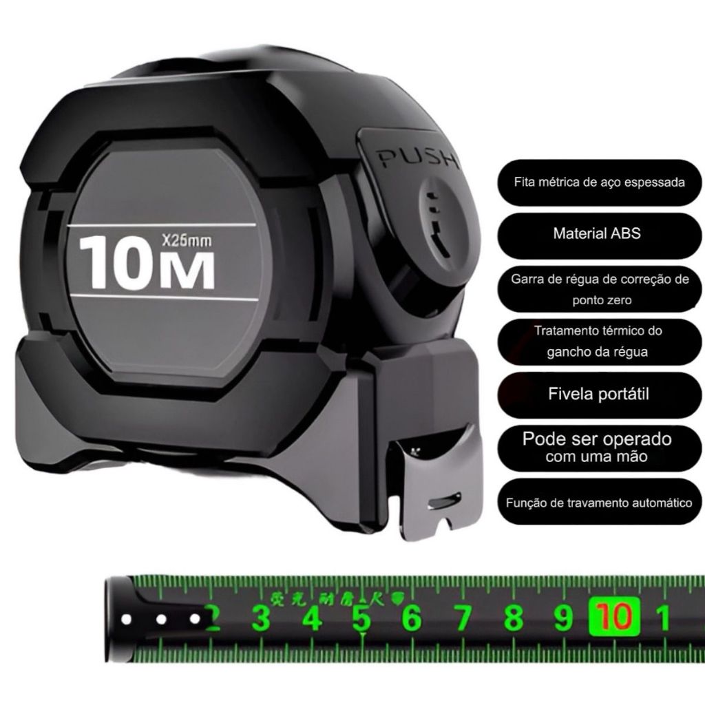 | Trena Profissional Fita Métrica 10 Metros Trava Automática este produto | R$ 34,90 | 10% | 4.8/5 | — |