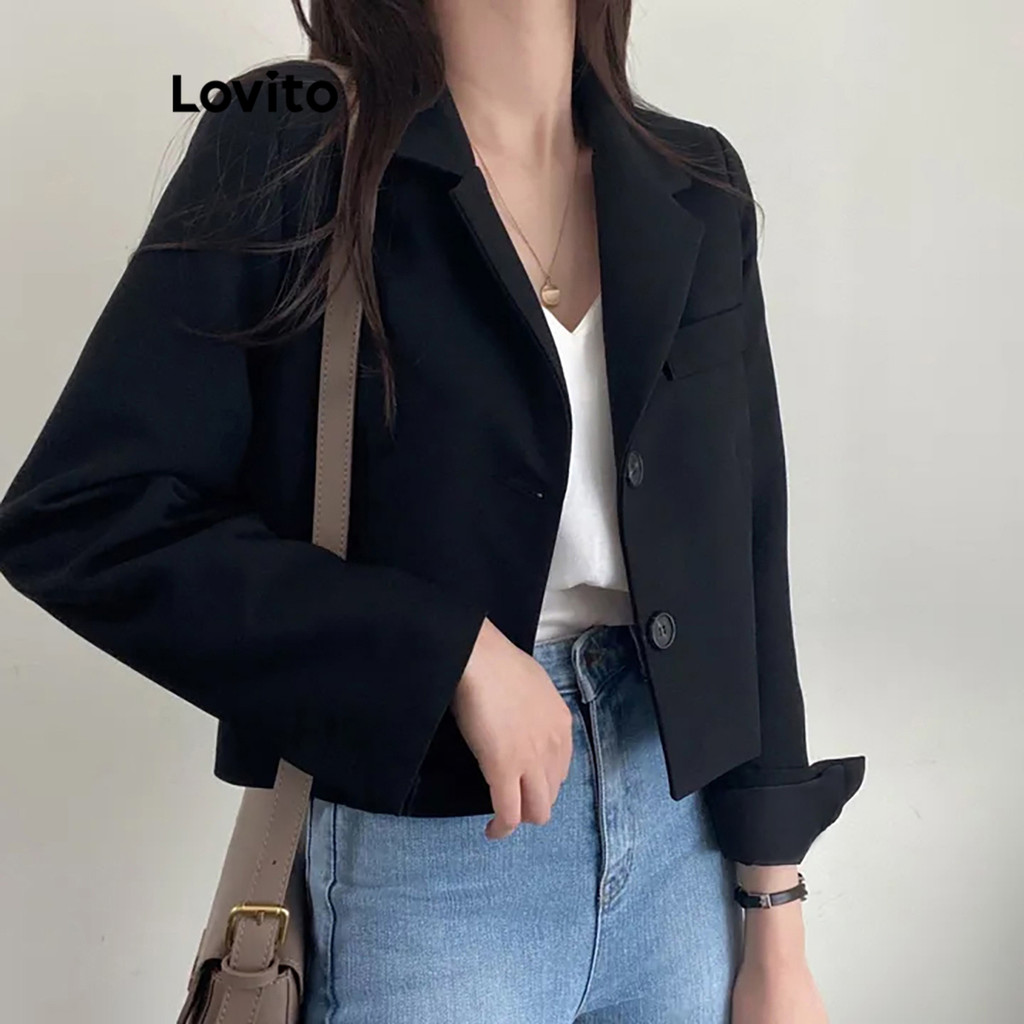 (Trendy) Lovito Blazer Casual Com Botão Liso E Bolso Para Mulheres LNE36029 (Cáqui/Cinza/Branco Off/Preto)