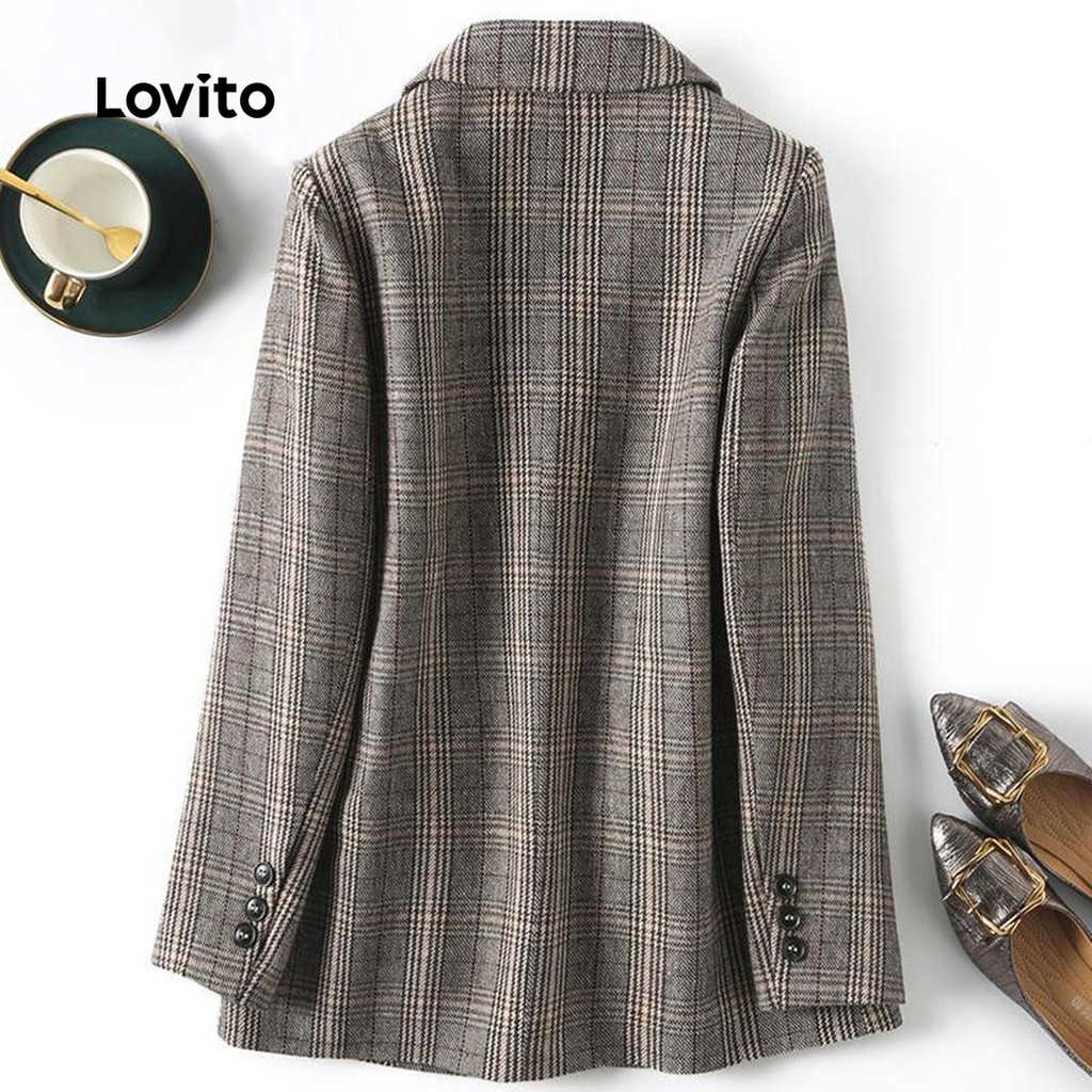 (Trendy) Lovito Blazer Casual com estampa de guingão para mulheres LNL101621