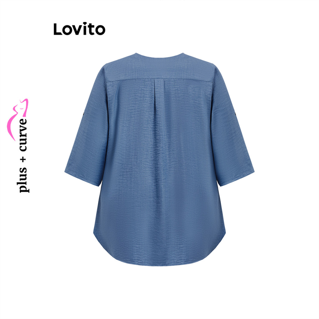 (Trendy) Lovito Blusa Curva Plus Size Casual Blusa Básica Com Botão Liso Para Mulheres LBL18309