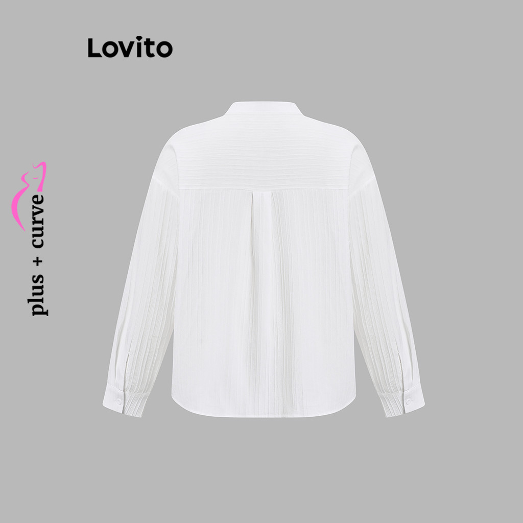 (Trendy) Lovito Blusa Curva Plus Size Casual Blusa Jacquard Com Botão Liso Para Mulheres LBL16672
