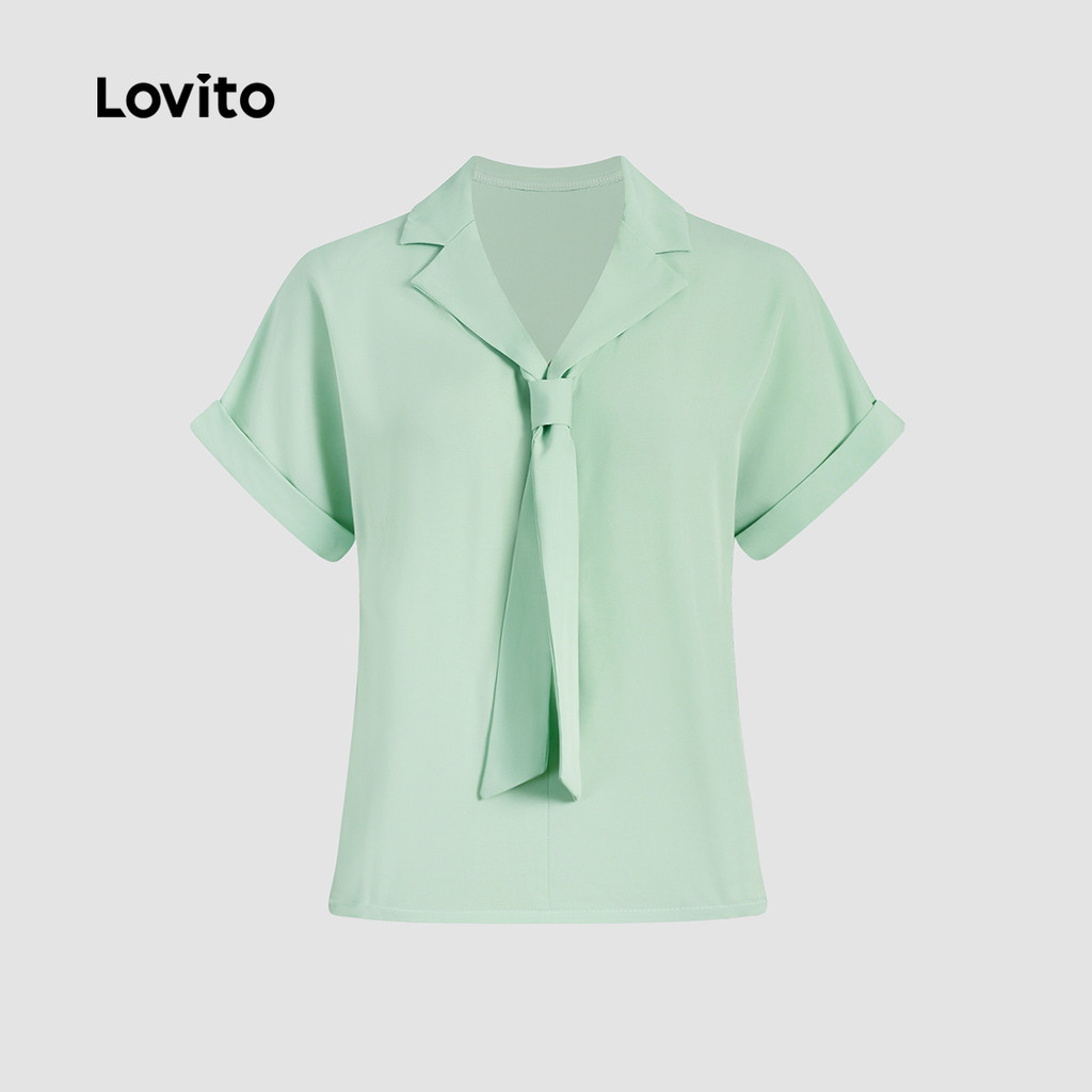 (Trendy) Lovito Blusa elegante com gola lisa e gravata para mulheres L131ED429