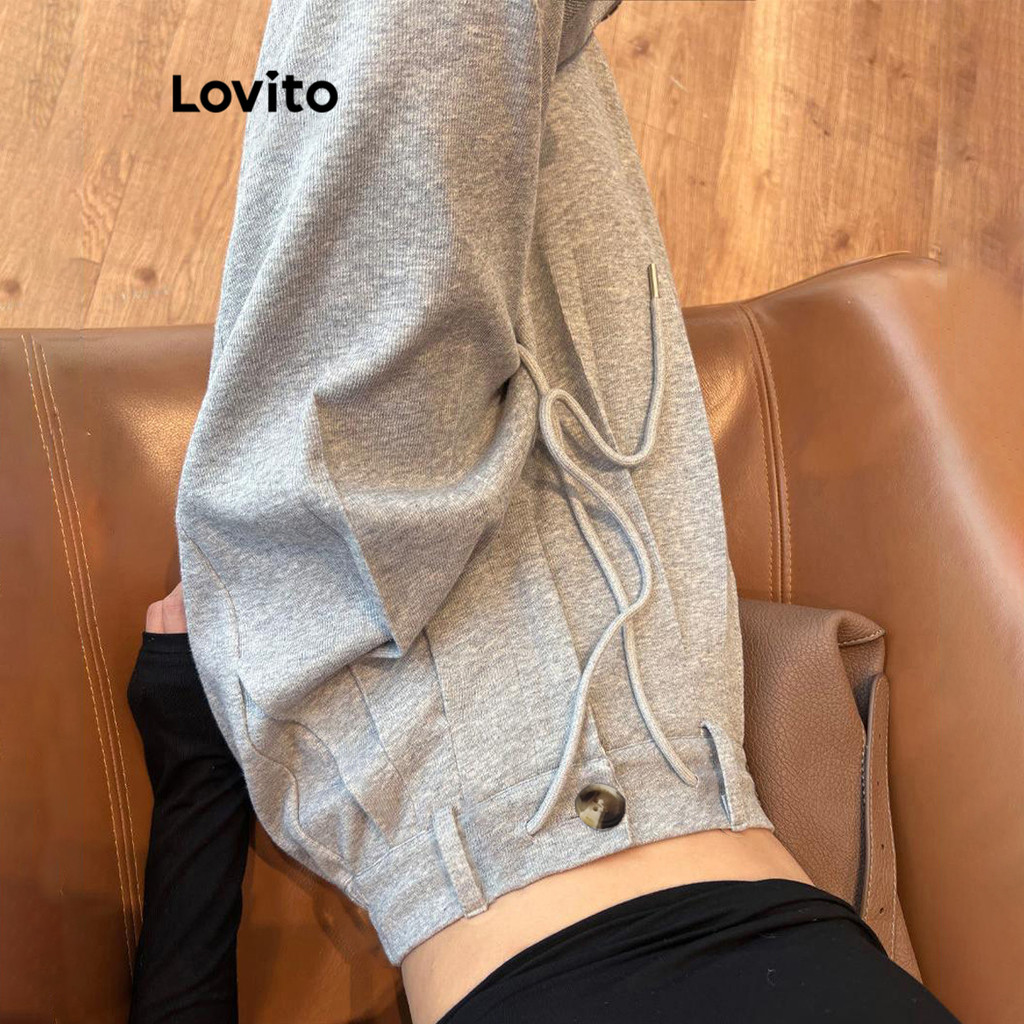 (Trendy) Lovito Calça Casual De Verão/Primavera Com Botão Traseiro Para Mulheres LNE47257