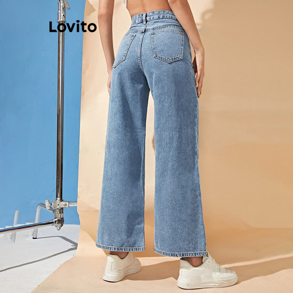 (Trendy) Lovito Calça Jeans Casual Com Bolso Liso Para Mulheres L118ED181
