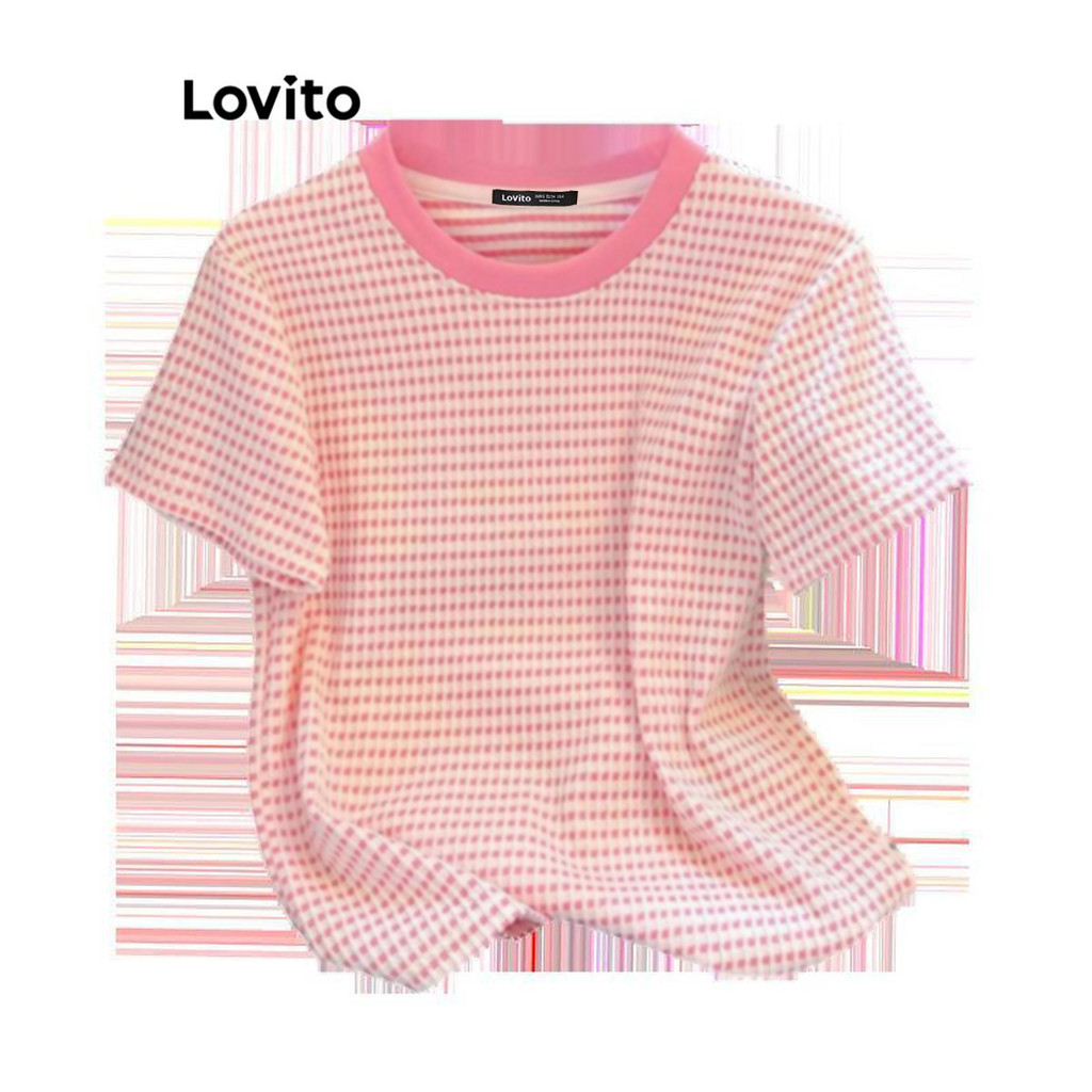 (Trendy) Lovito Camiseta Casual Xadrez Colorblock Para Mulheres LNE70328