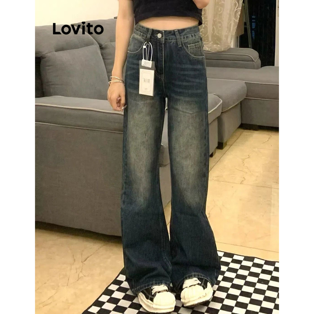 (Trendy) Lovito Casual Calça Jeans Feminina Lisa com Zíper LNA34035 (Multicolorido)