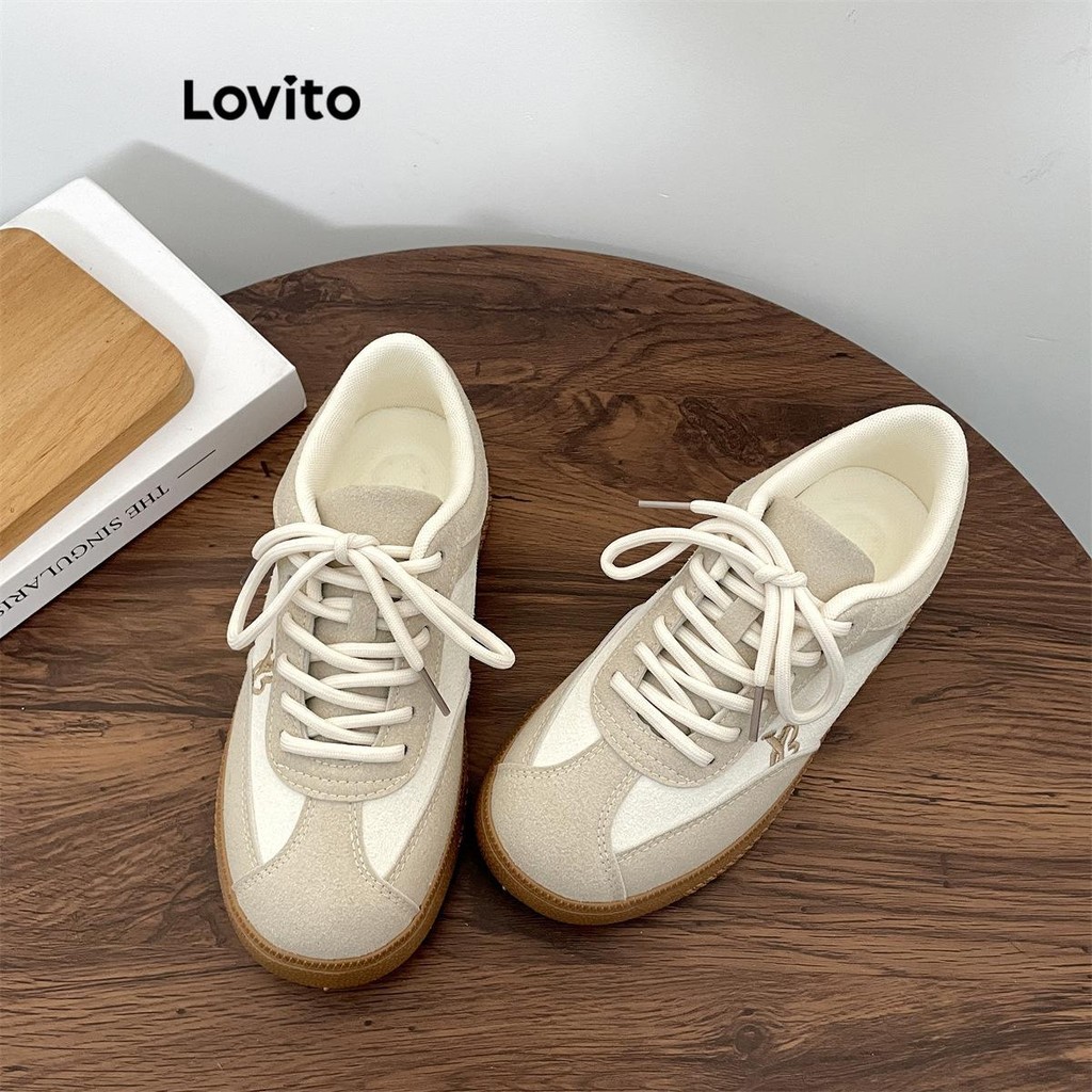 (Trendy) Lovito Casual liso Colorblock versão coreana versátil fundo macio leve tênis confortável para mulheres LFA73297
