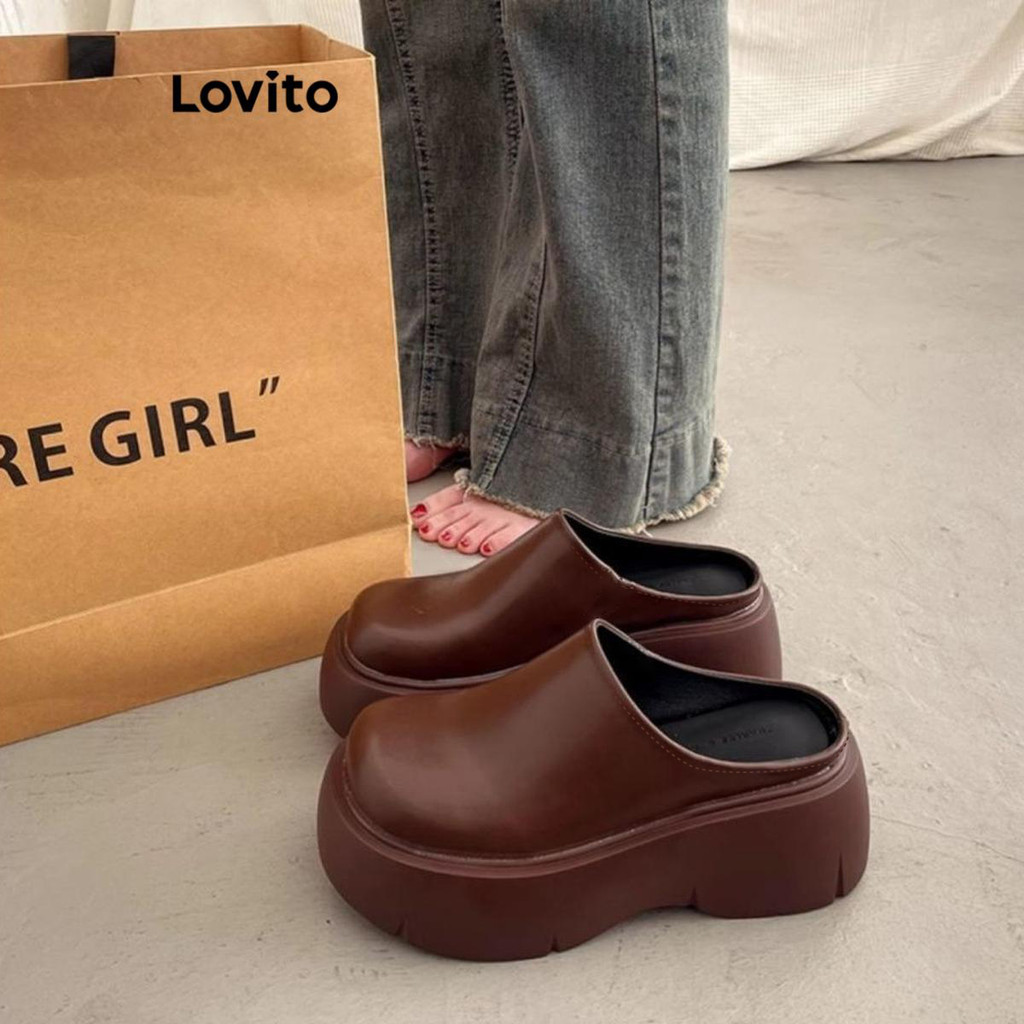 (Trendy) Lovito Casual Liso Ins Moda Sola Grossa Aumentar A Altura Usar Fora Da Sandália Plana Para Mulheres LFA59223