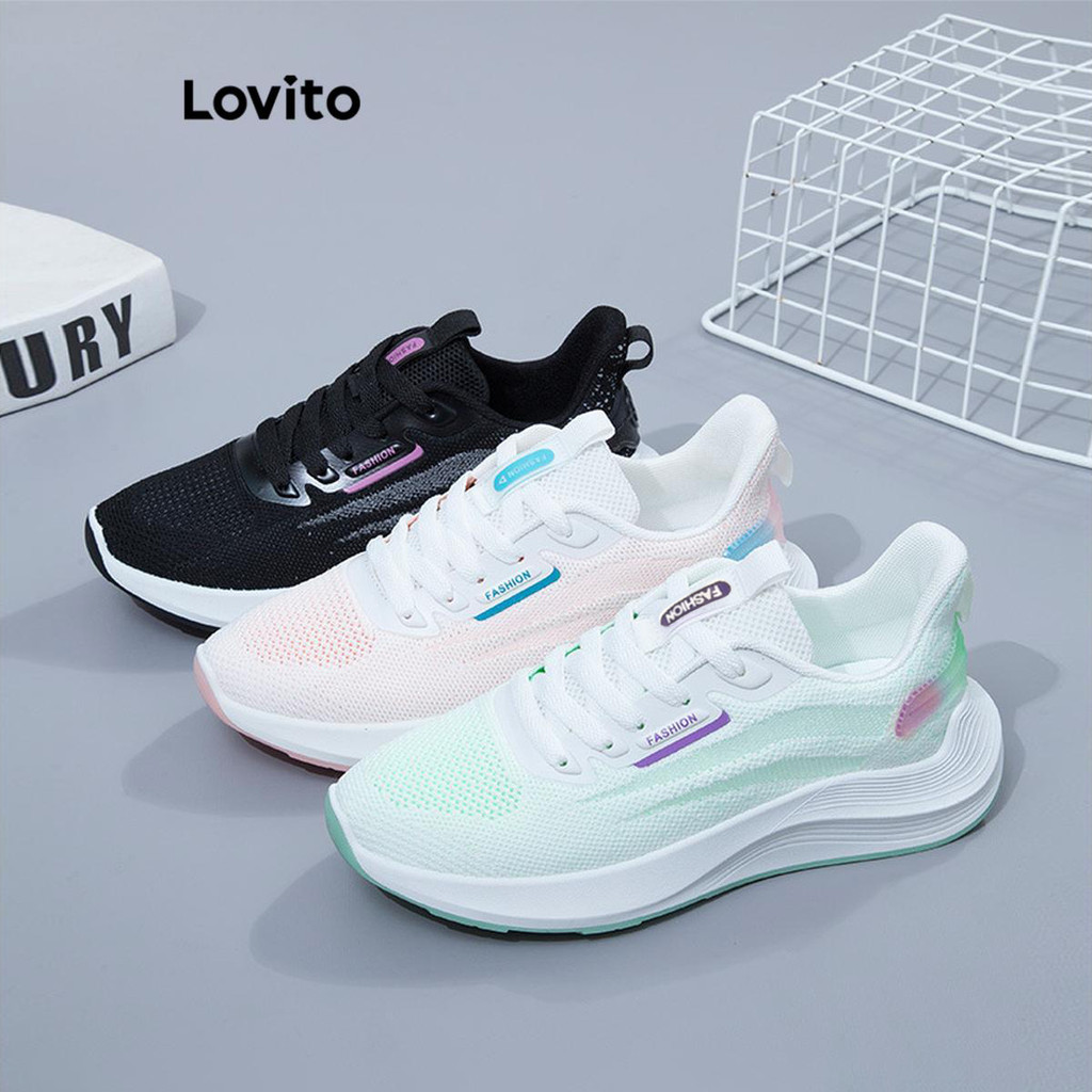 (Trendy) Lovito Esporte simples versão sapatos malha respirável esportes correndo moda tênis para mulher LFA62057