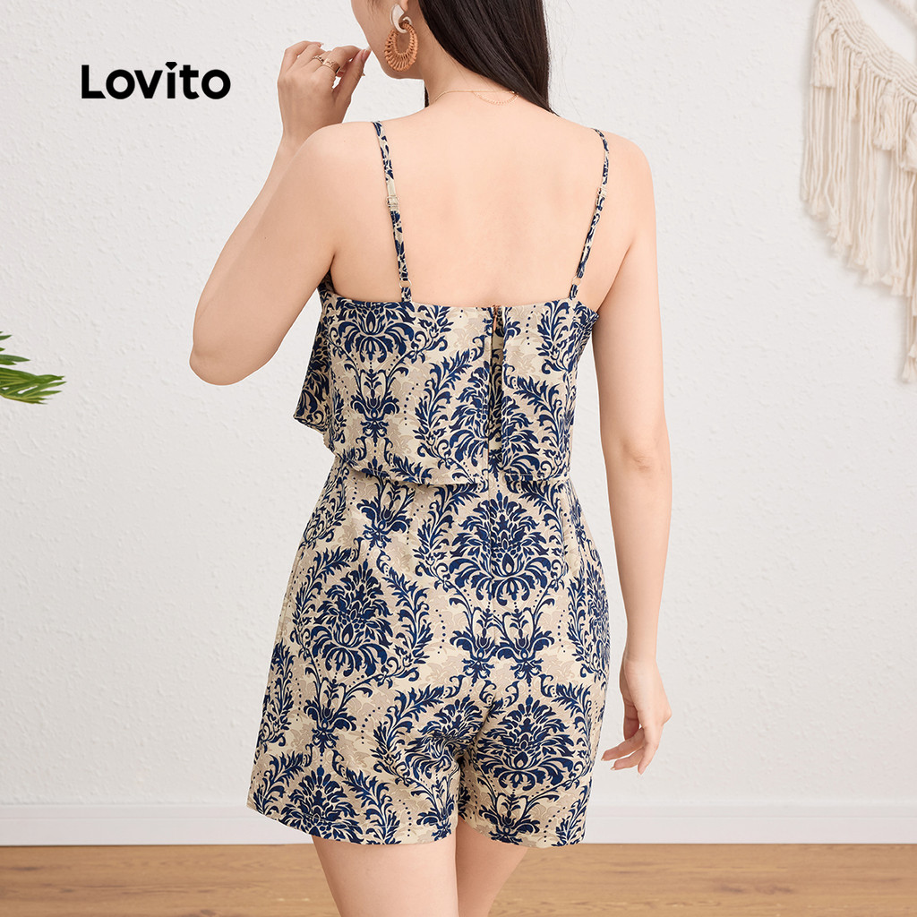(Trendy) Lovito Macacão Boho Tribal Print Dupla Camada Padrão Macacão De Verão Para Mulheres L124AD940